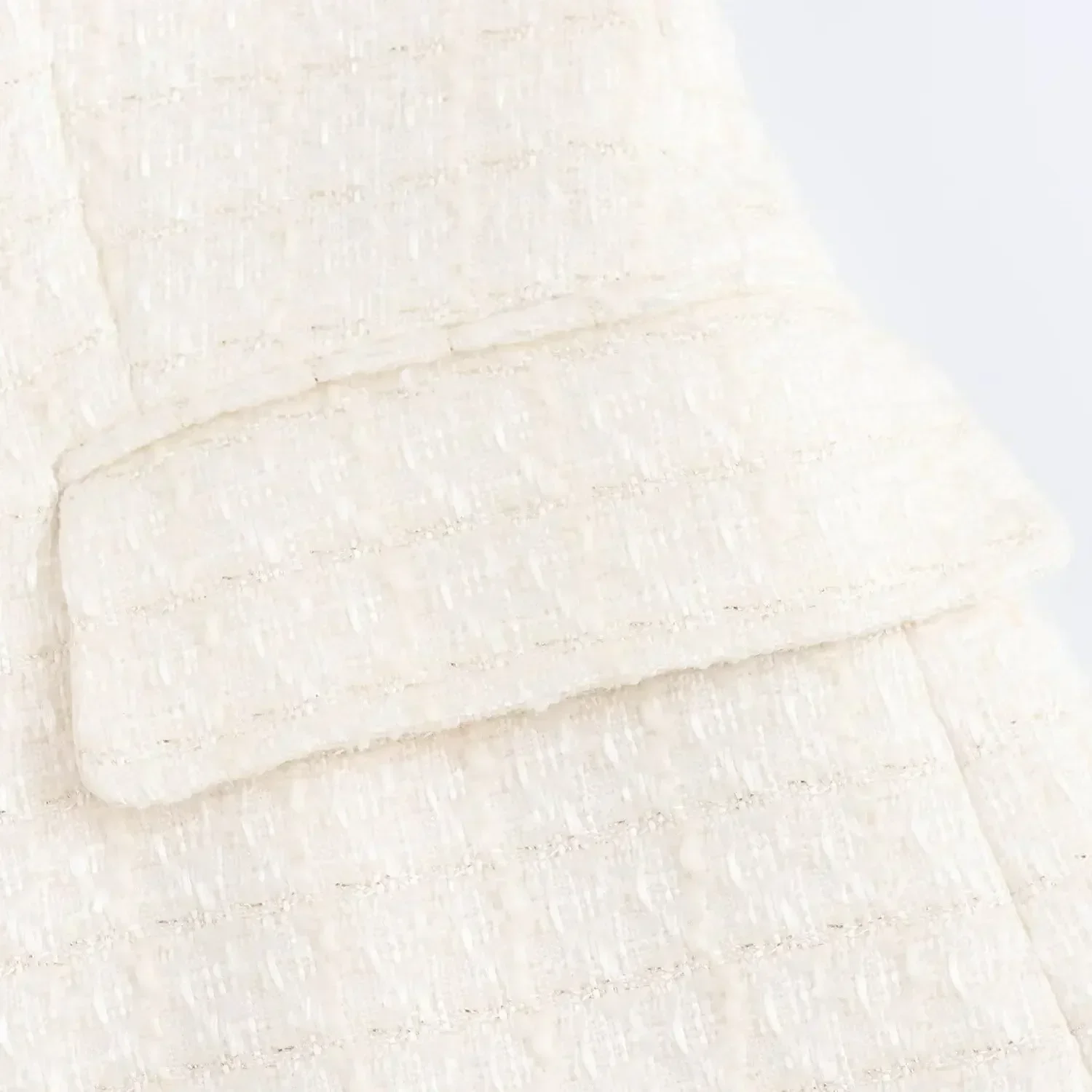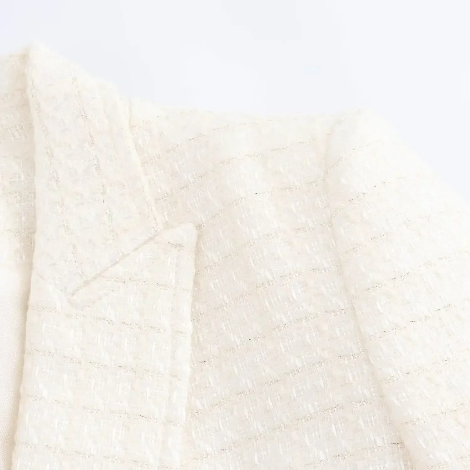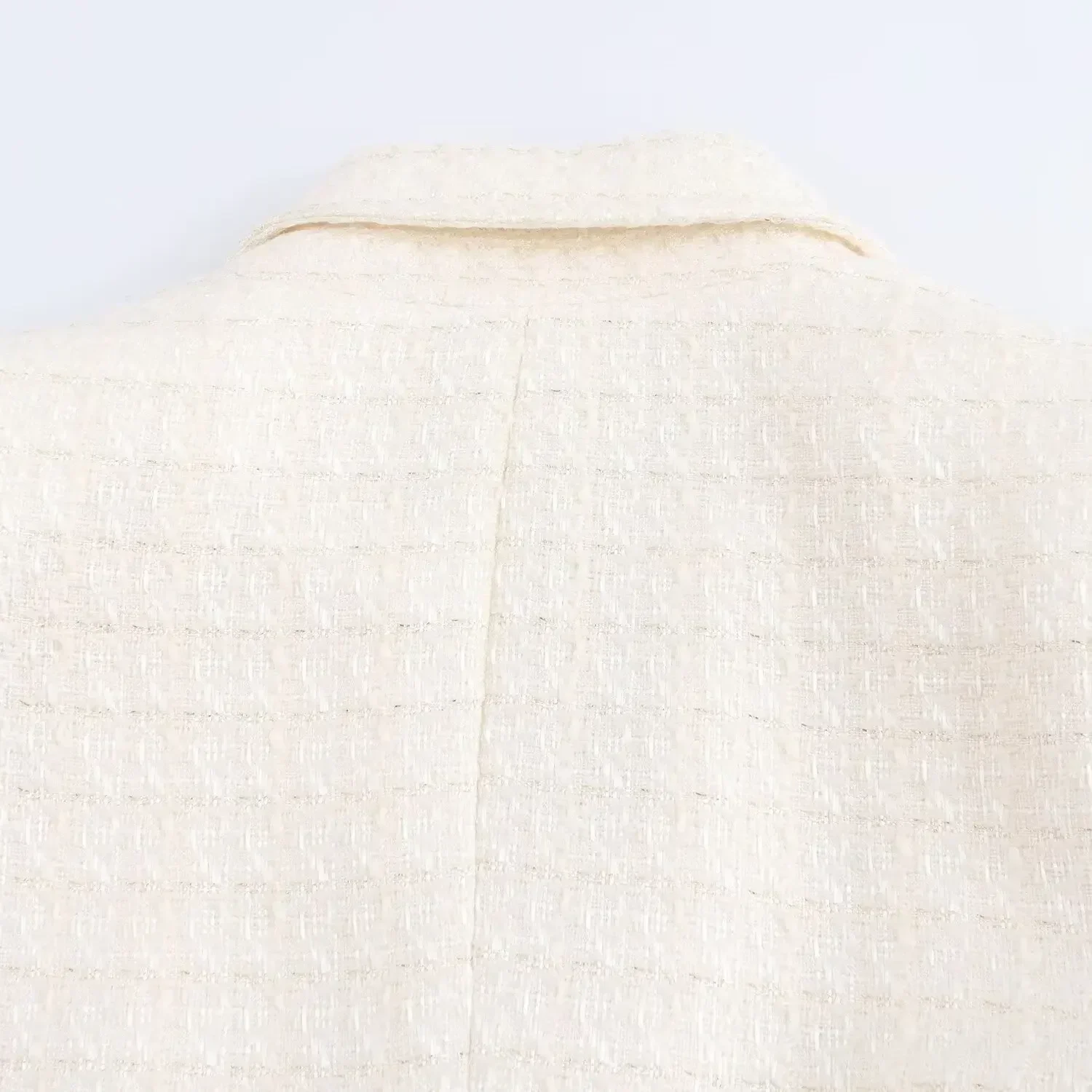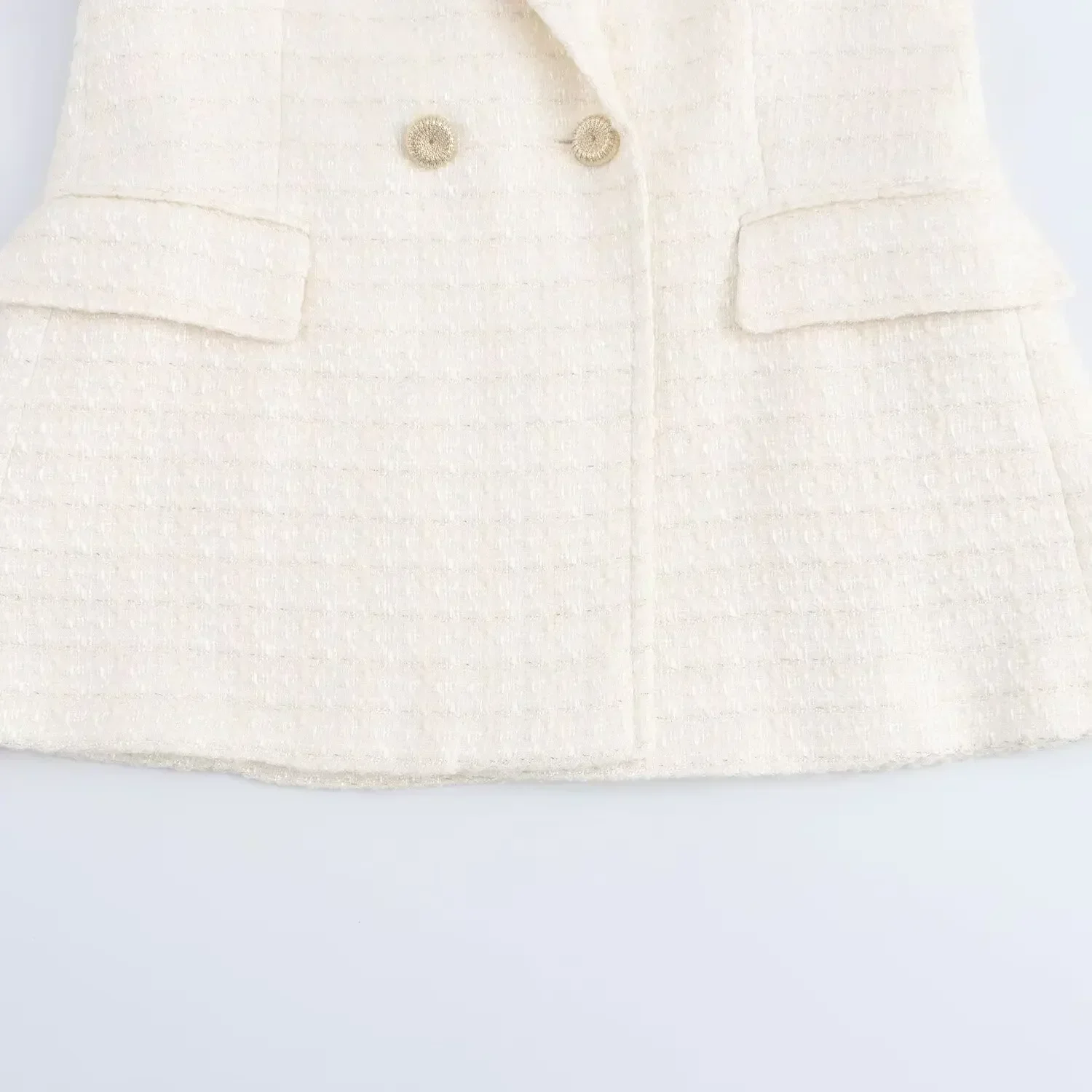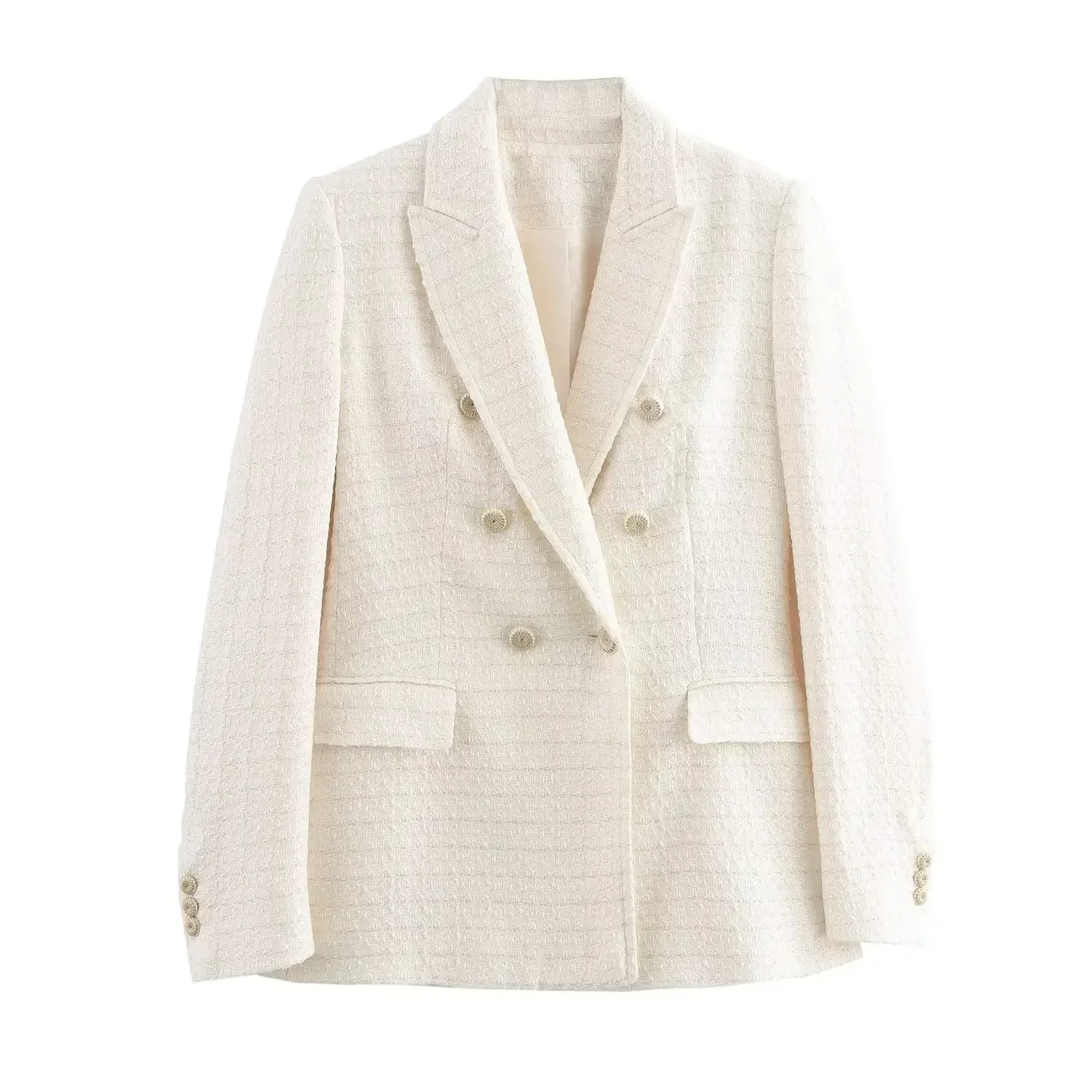 Ladies' new fashion Flip decoration slim double breasted Tweed Check textured suit coat retro long sleeved women's coat chic top