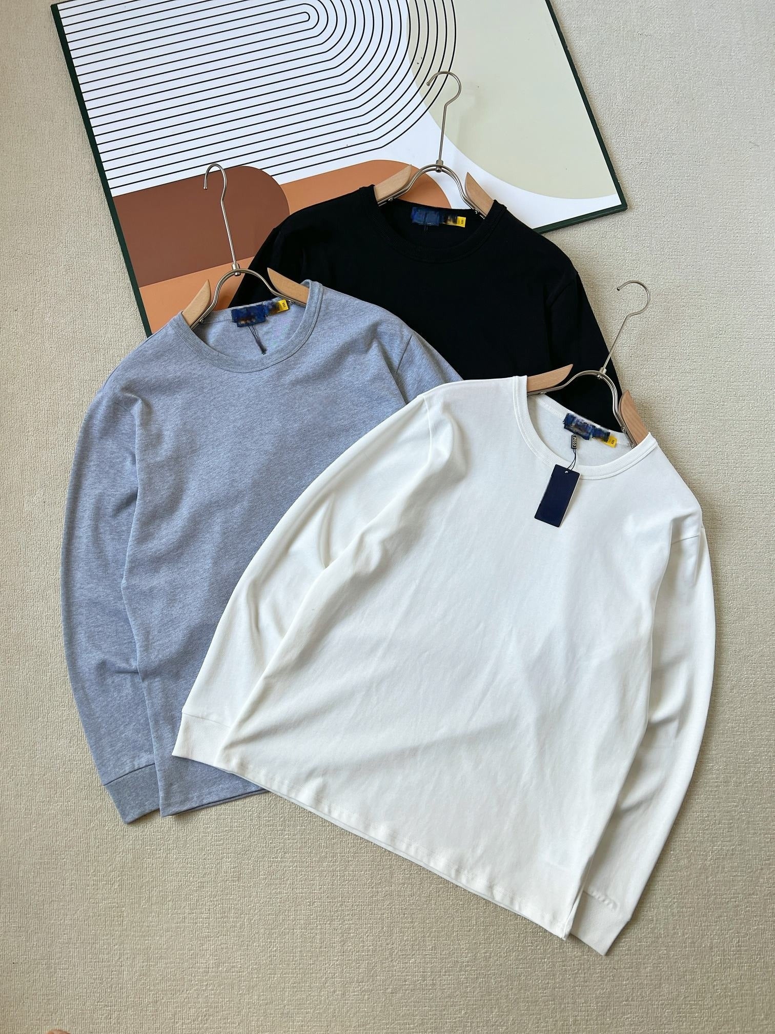 Men's new casual Joker embroidered solid color O-neck bottoming shirt long sleeve T-shirt