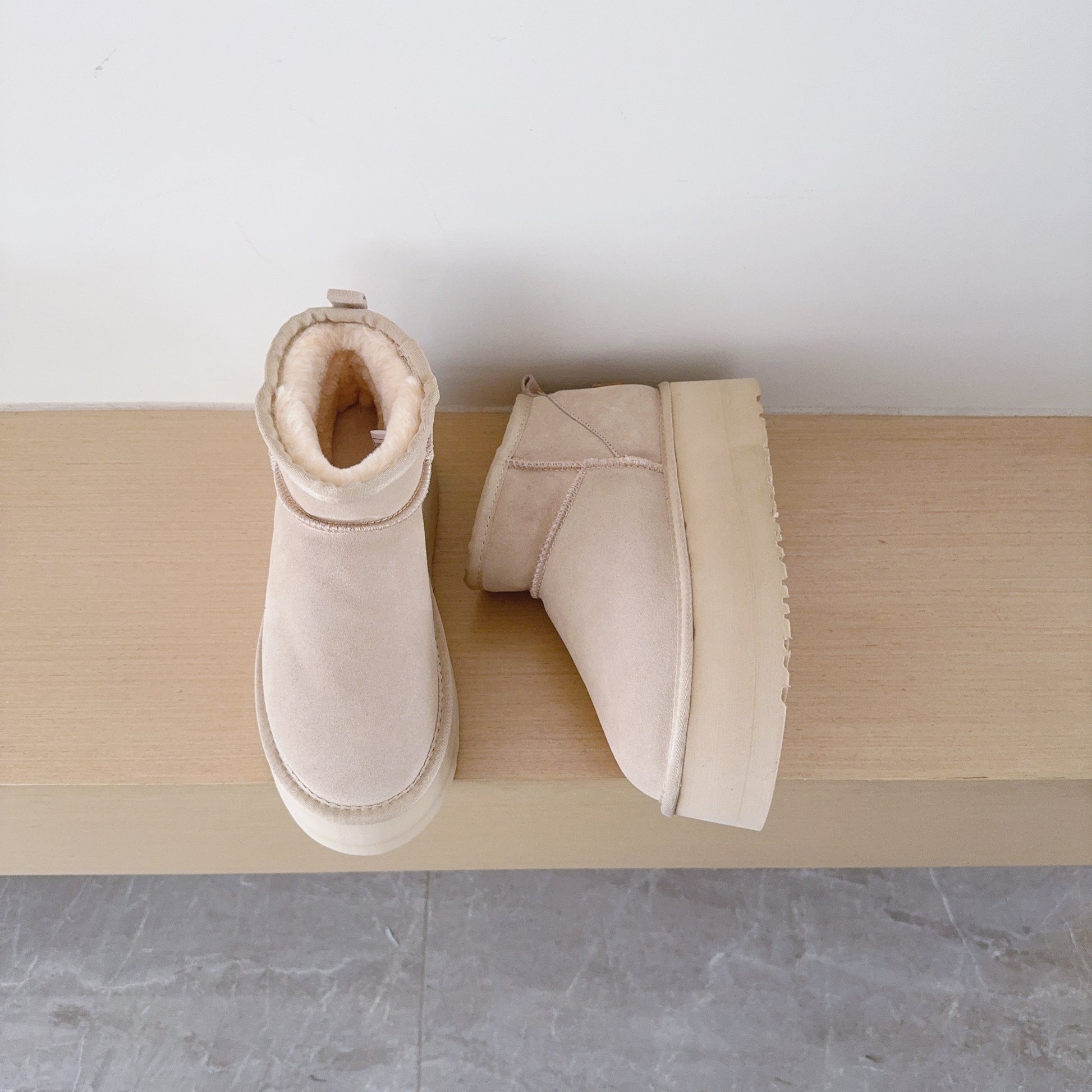 New ultra-high sole snow boots have a shoe box