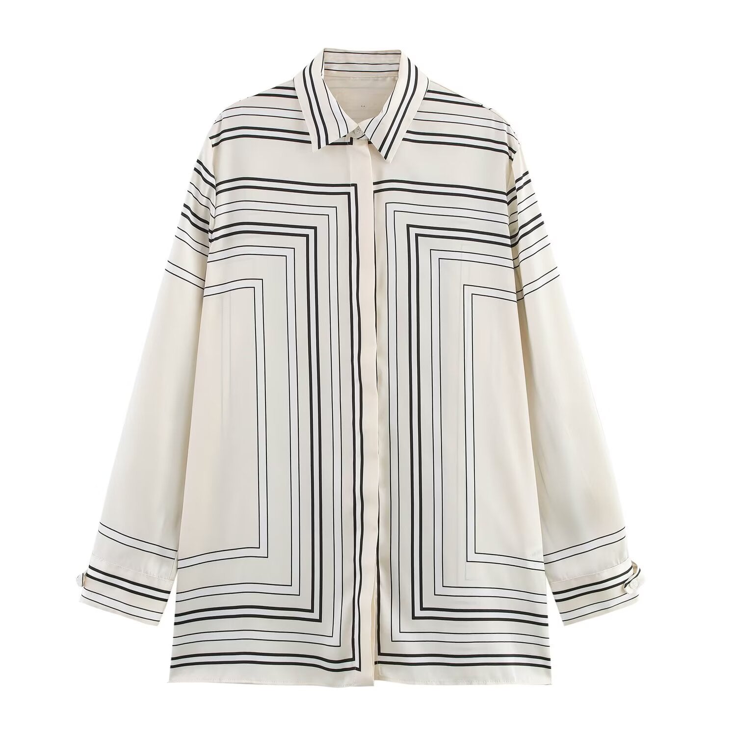 set woman 2 pieces2025 Fashion Printed shirt Vintage Long Sleeve Female + Pants Women's suit