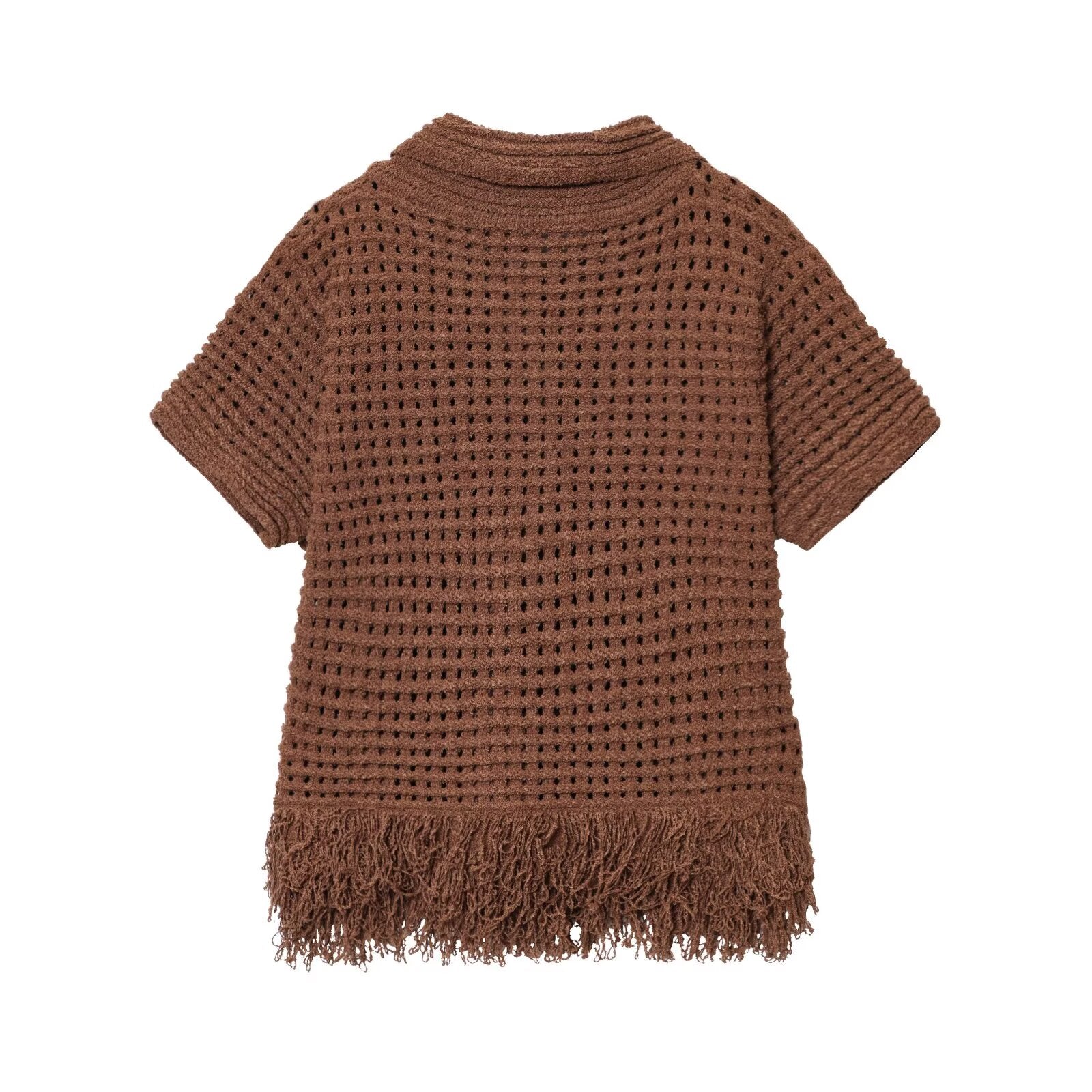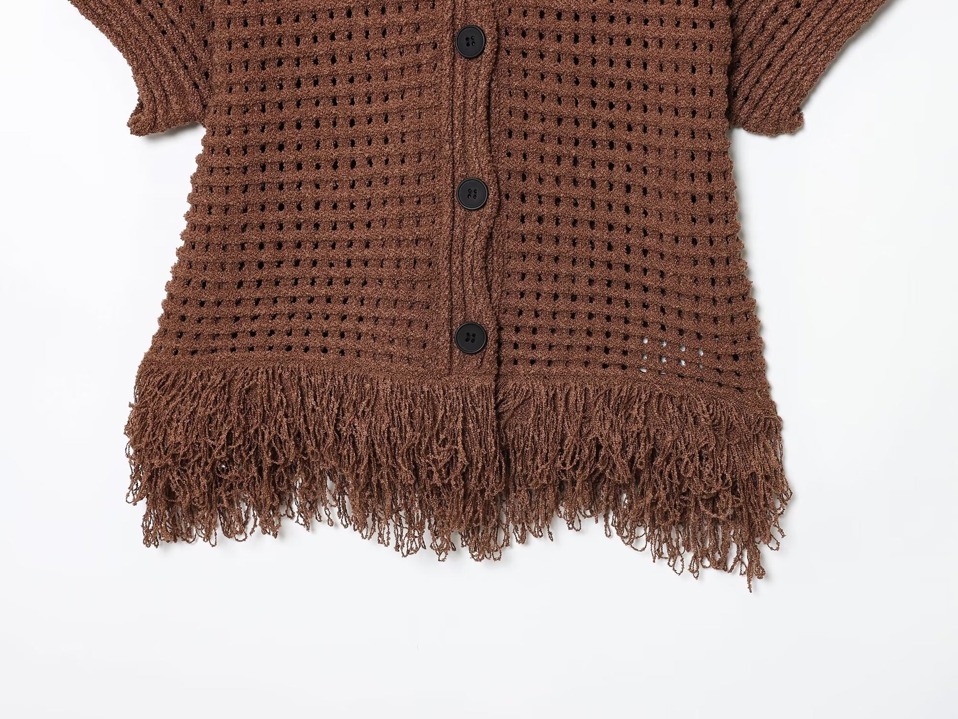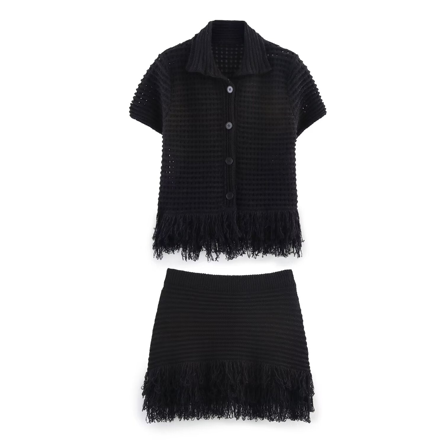 suit Women's 2 pieces tassel decorated Plaid knit Coat+Skirts