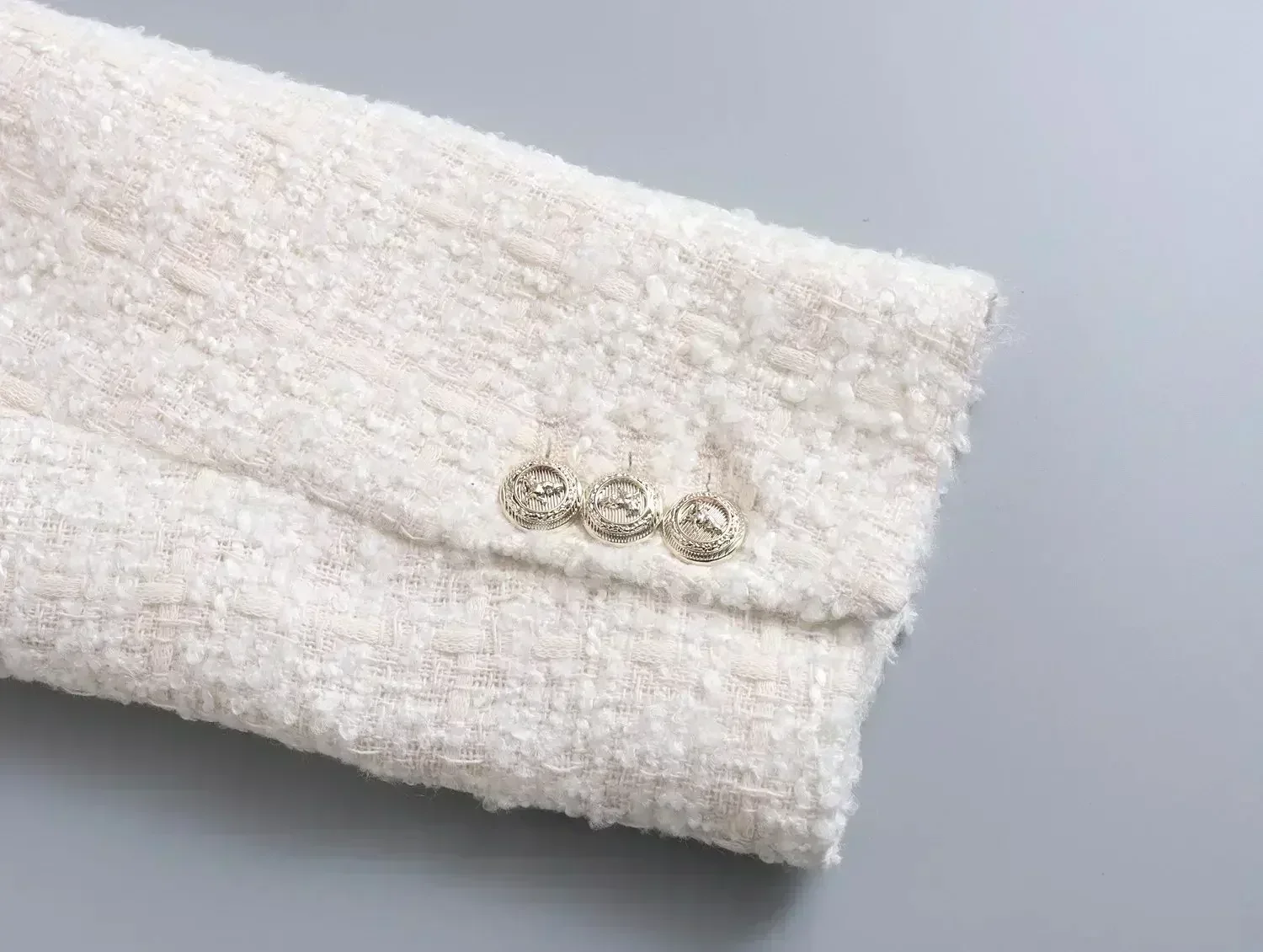 Women 2022 New Fashion Double Breasted Tweed Blazer Coat Vintage Long Sleeve Pockets Female Outerwear Chic