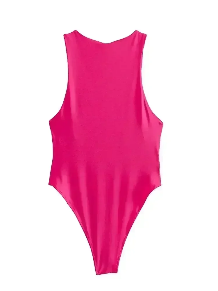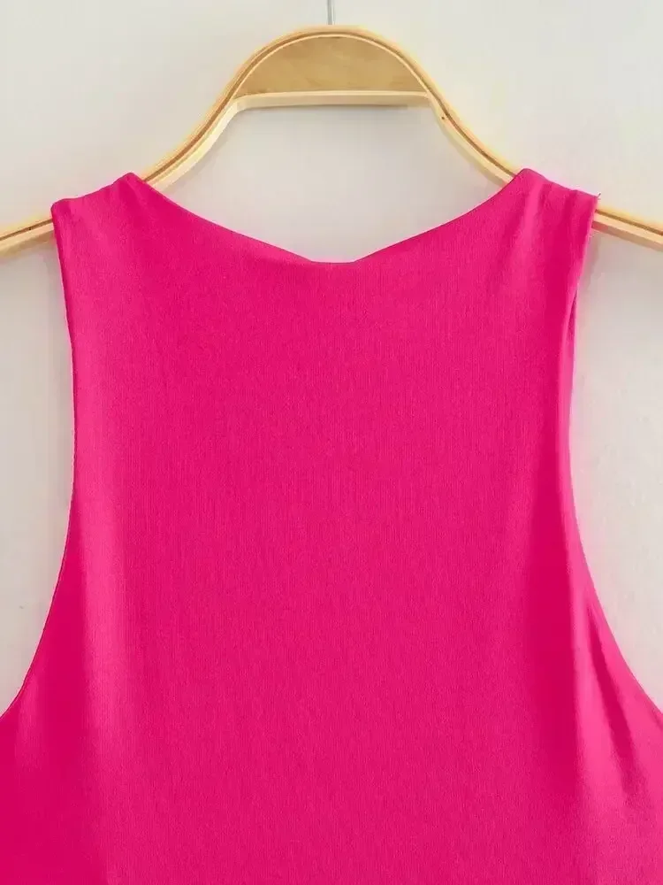 Women 2023 New Chic Fashion Vest style Solid O Neck Tight Knitted bodysuit Vintage Sleeveless Button-up Female Jumpsuit Mujer