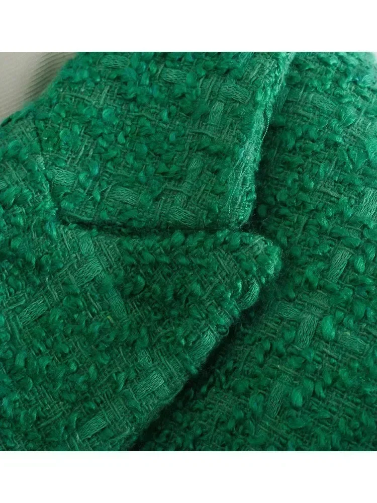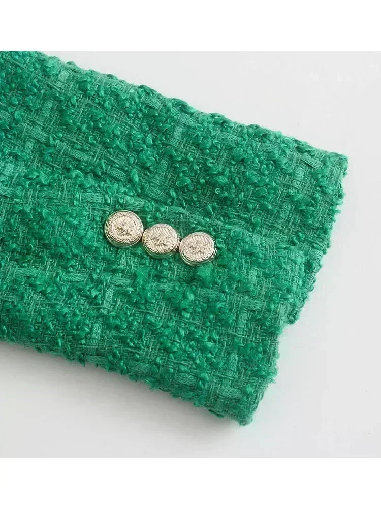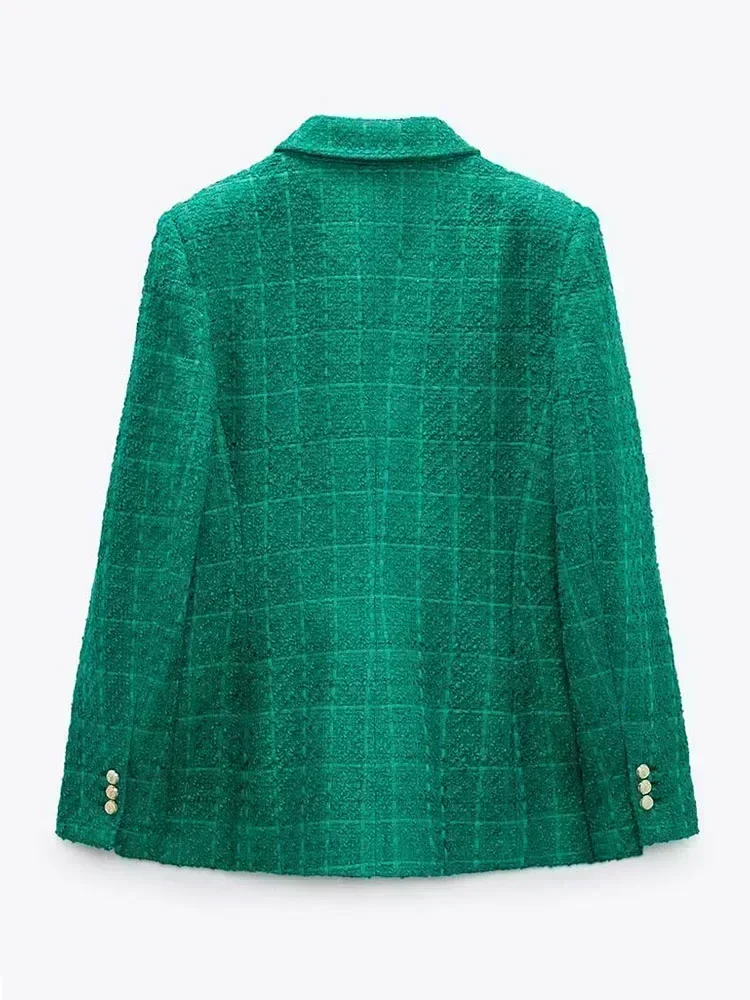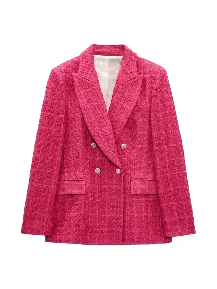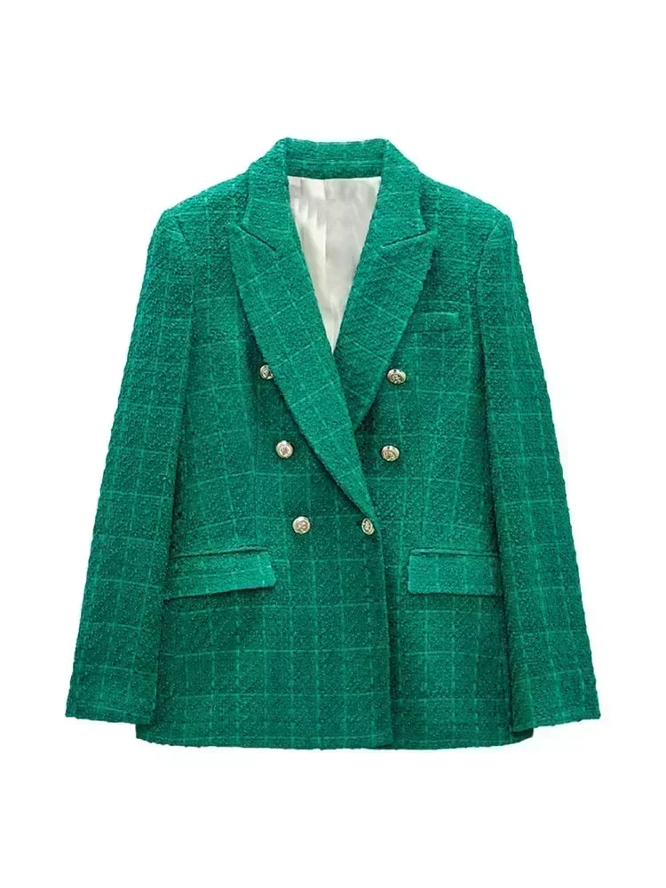 Women 2024 New Fashion Double Breasted Tweed Check Blazer Coat Vintage Long Sleeve Pockets Female Outerwear Chic