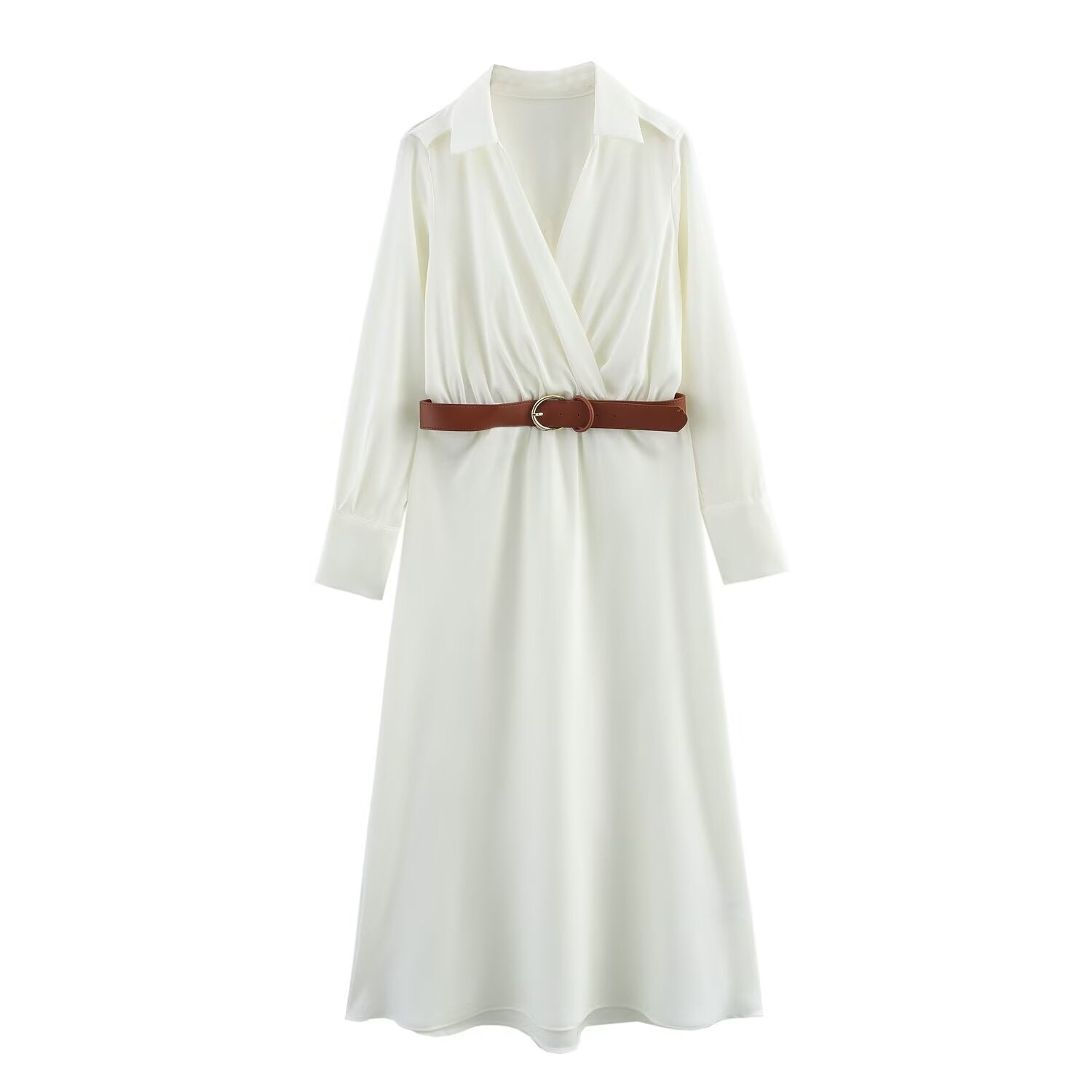 Women 2025 Autumn New Fashion Wear a belt shirt style Dress Vintage Long Sleeve Female Dresses