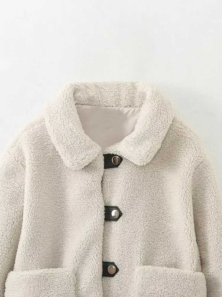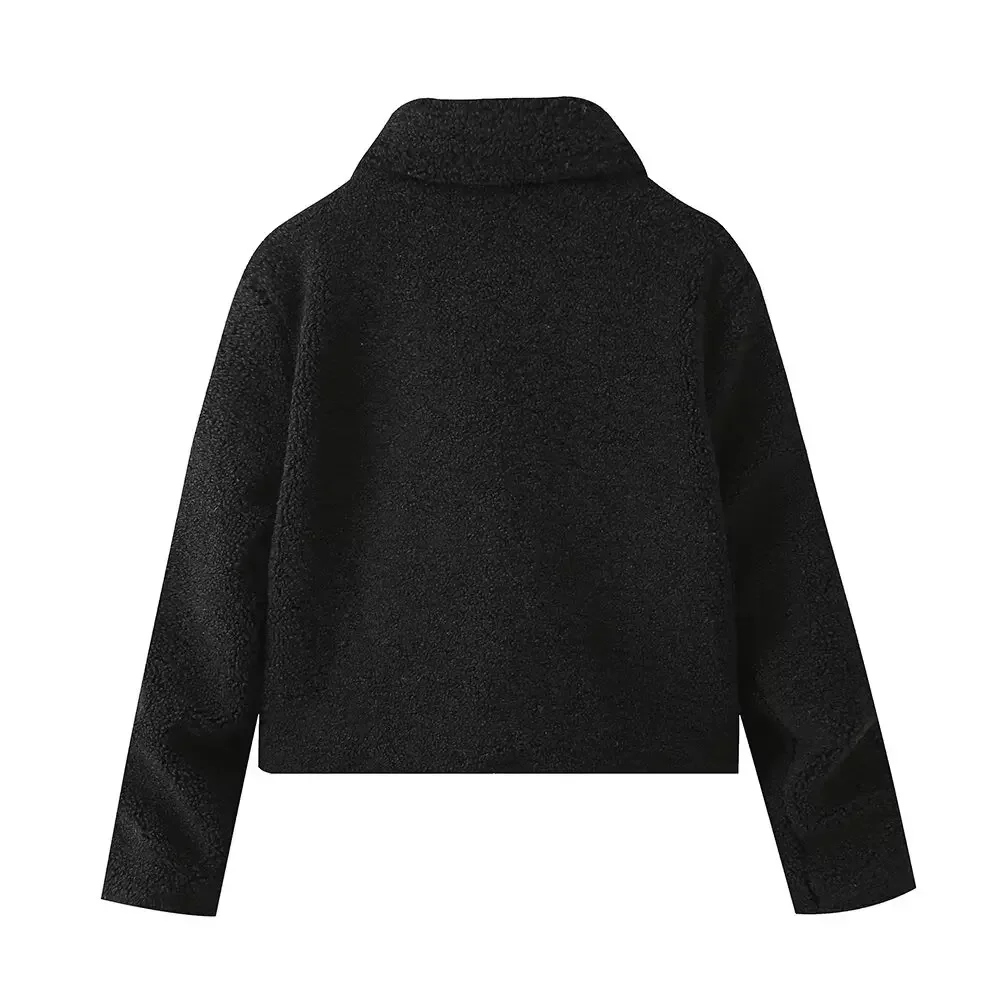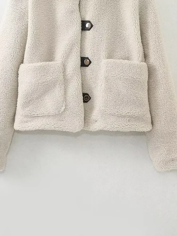 Women's 2024 New Fashion Casual Single breasted Warm Lapel Fleece Jacket Coat Retro Long Sleeve Pocket Women's Coat Unique Top