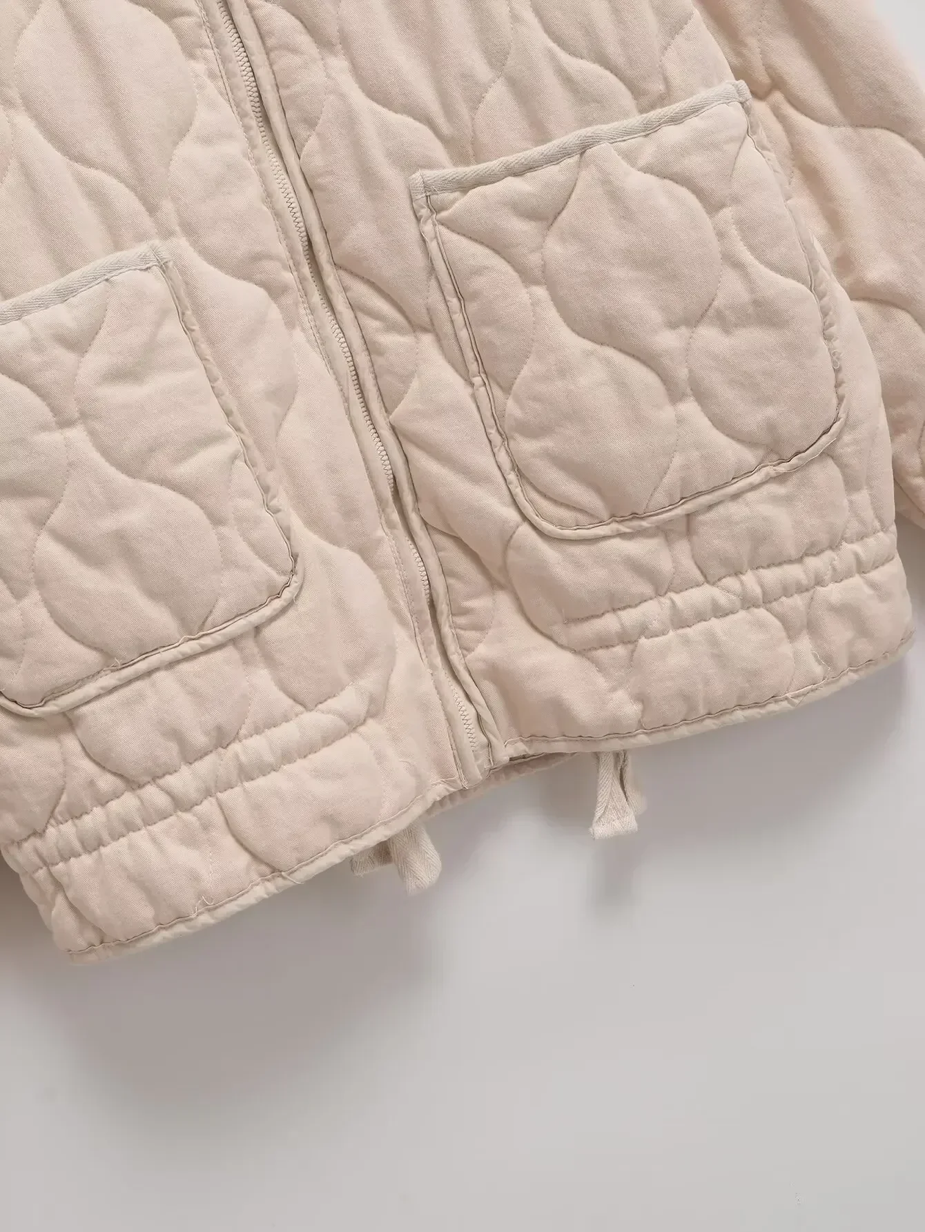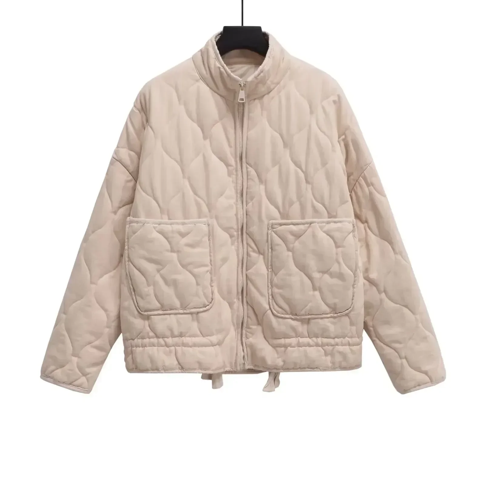 Women's 2024 New Fashion Large Pocket Decoration Loose Warm Washed Cotton Coat Retro Long Sleeve Zipper Women's Coat