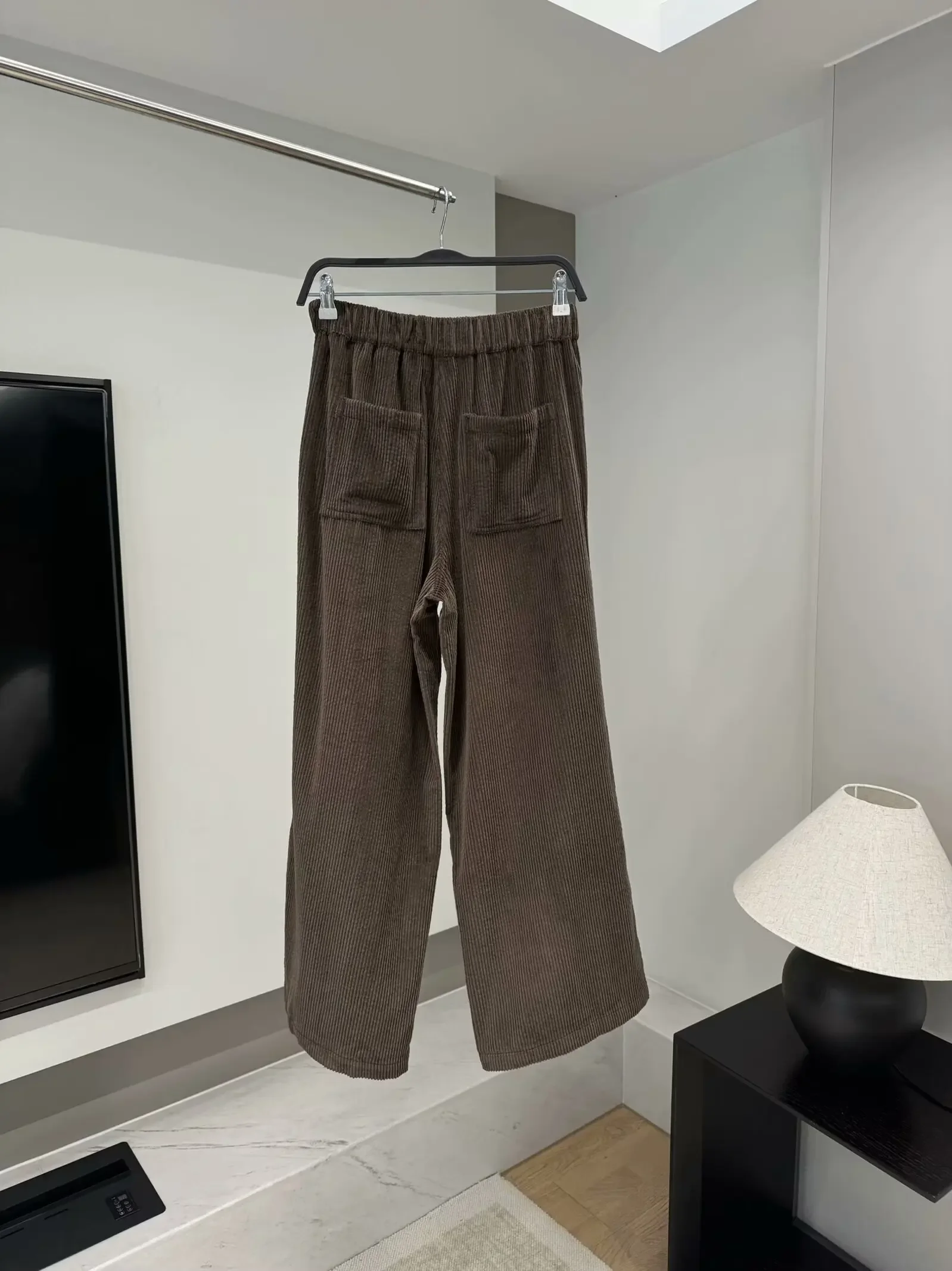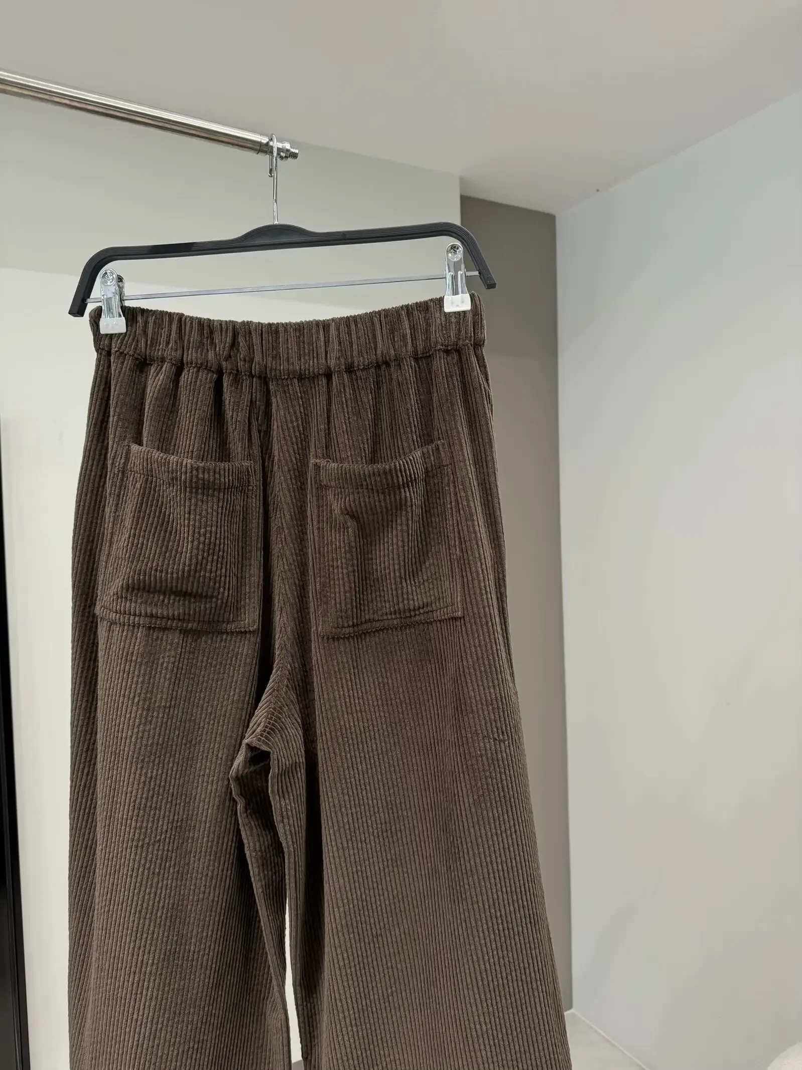 Women's 2024 New Fashion Loose Side Pocket Casual Corduroy Wide Leg Pants Retro Mid Waist Zipper Women's Pants Mujer