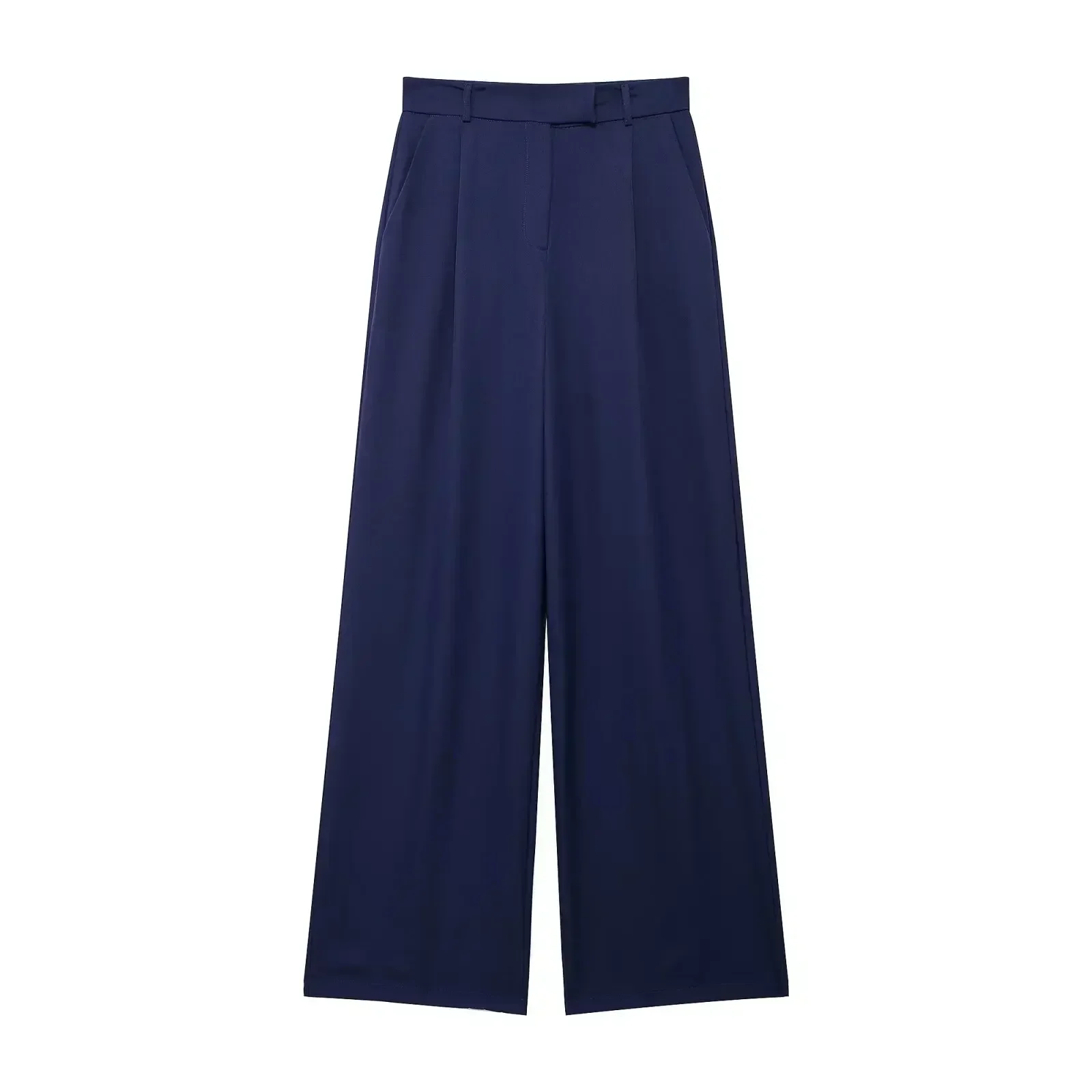 Women's 2024 New Fashion Multicolor Loose Side Pocket Casual Pleated Wide Leg Pants Retro High Waist Zipper Women's Pants