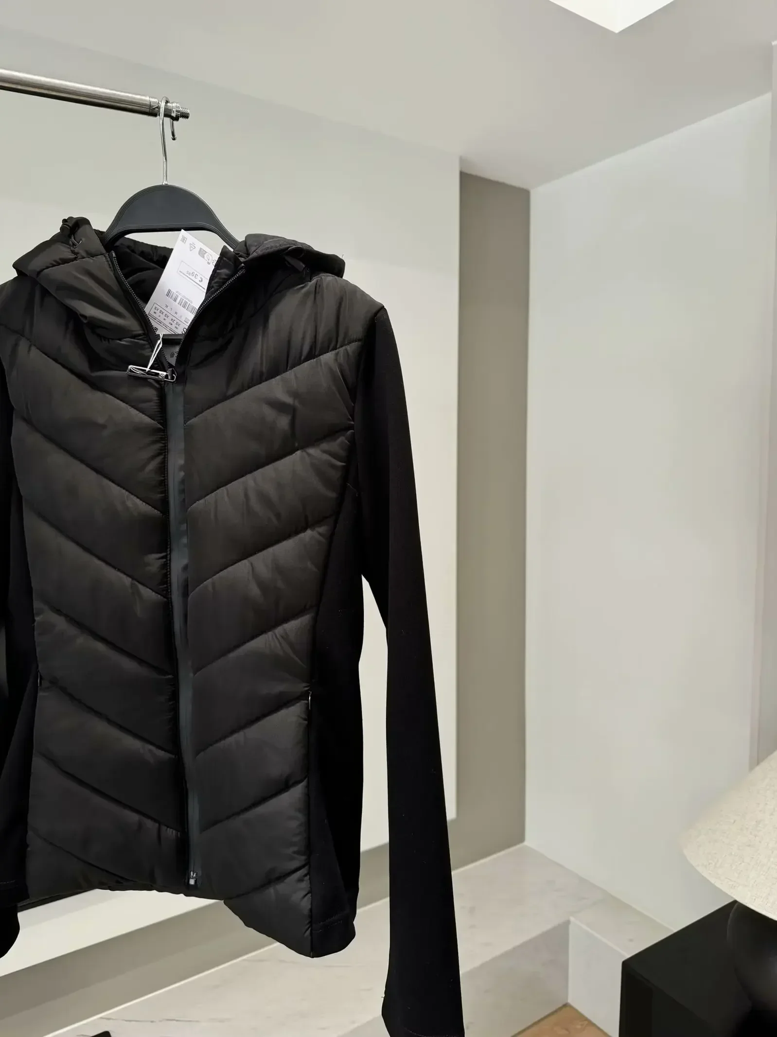 Women's 2024 New Fashion with Pocket Black Splicing Hooded Cotton Jacket Coat Retro Long Sleeve Zipper Women's Coat Chic Top