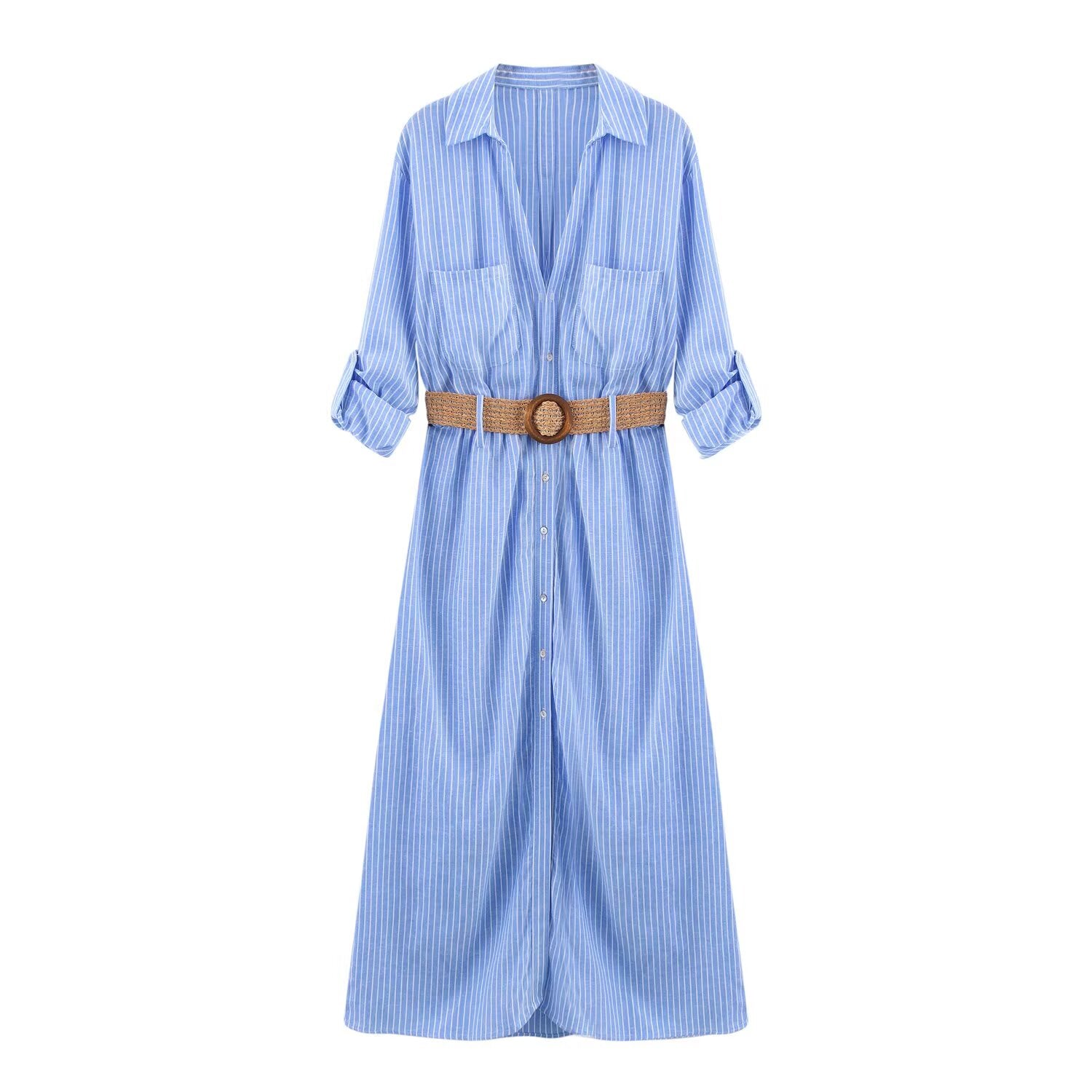 Women's 2025 fashion chic retro women's dress with belt midi skirt