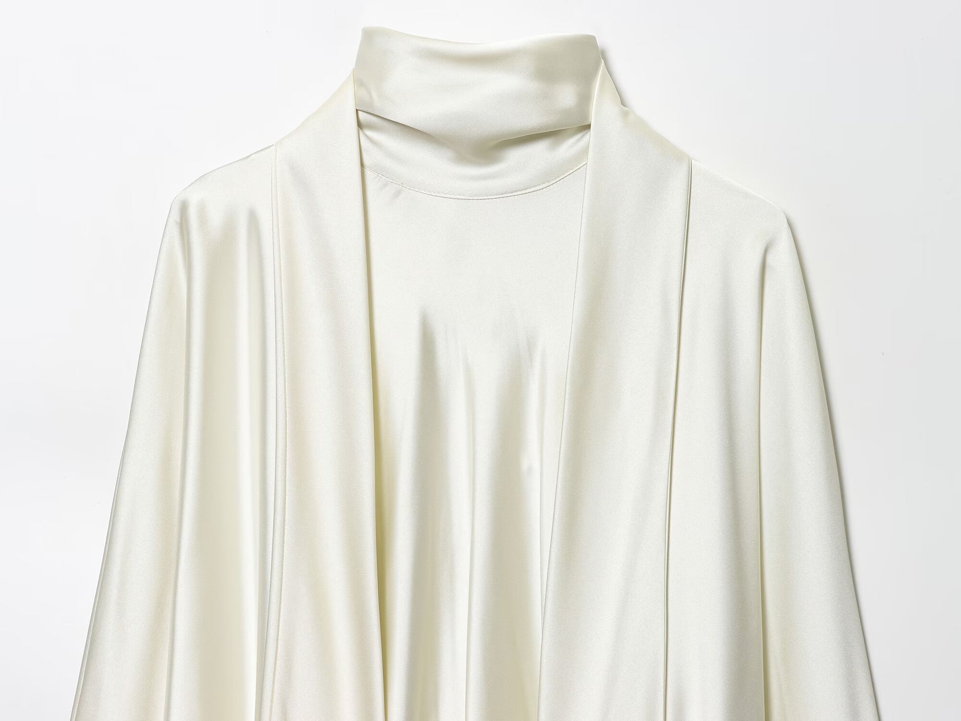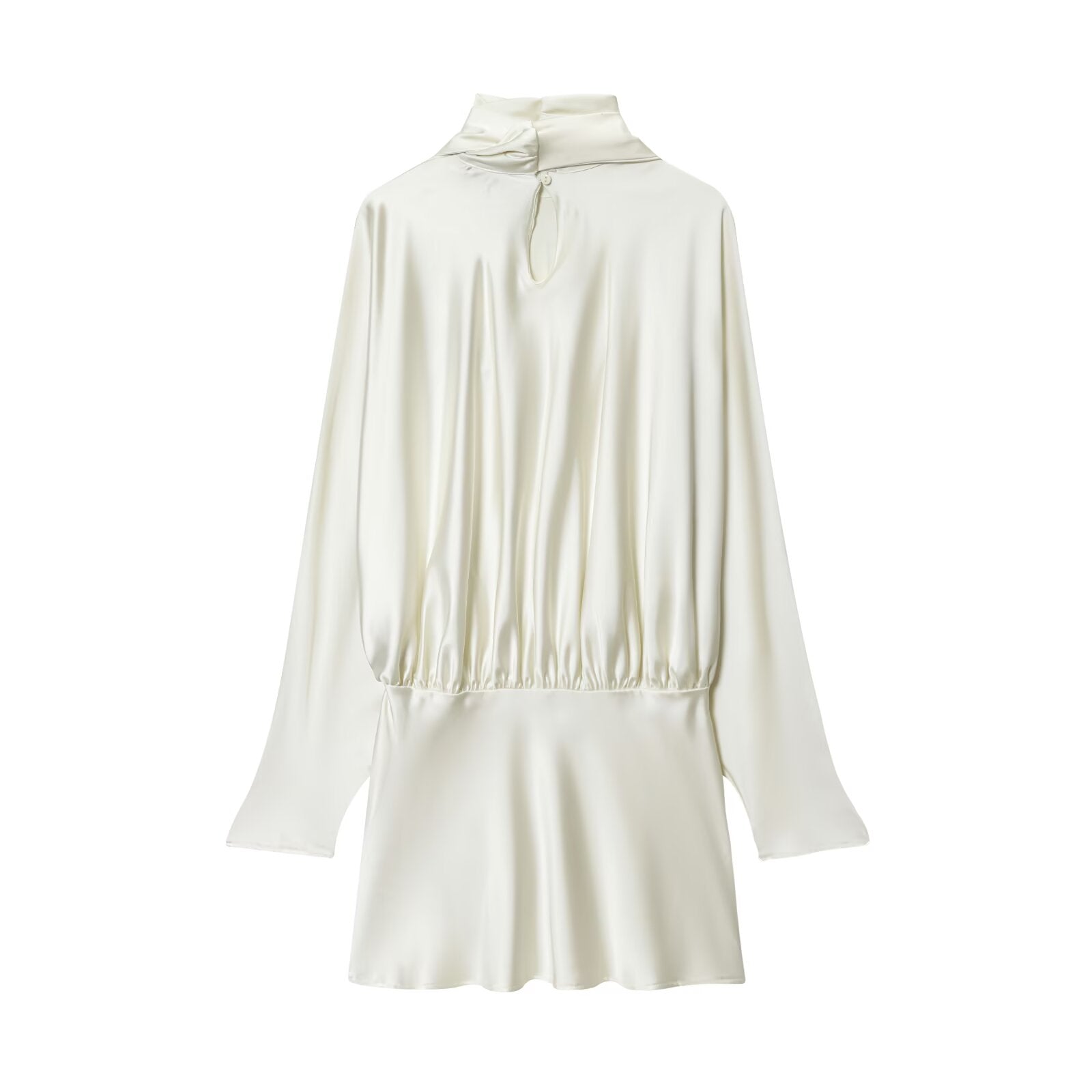 Women's 2025 new fashion scarf decoration satin texture mini dress