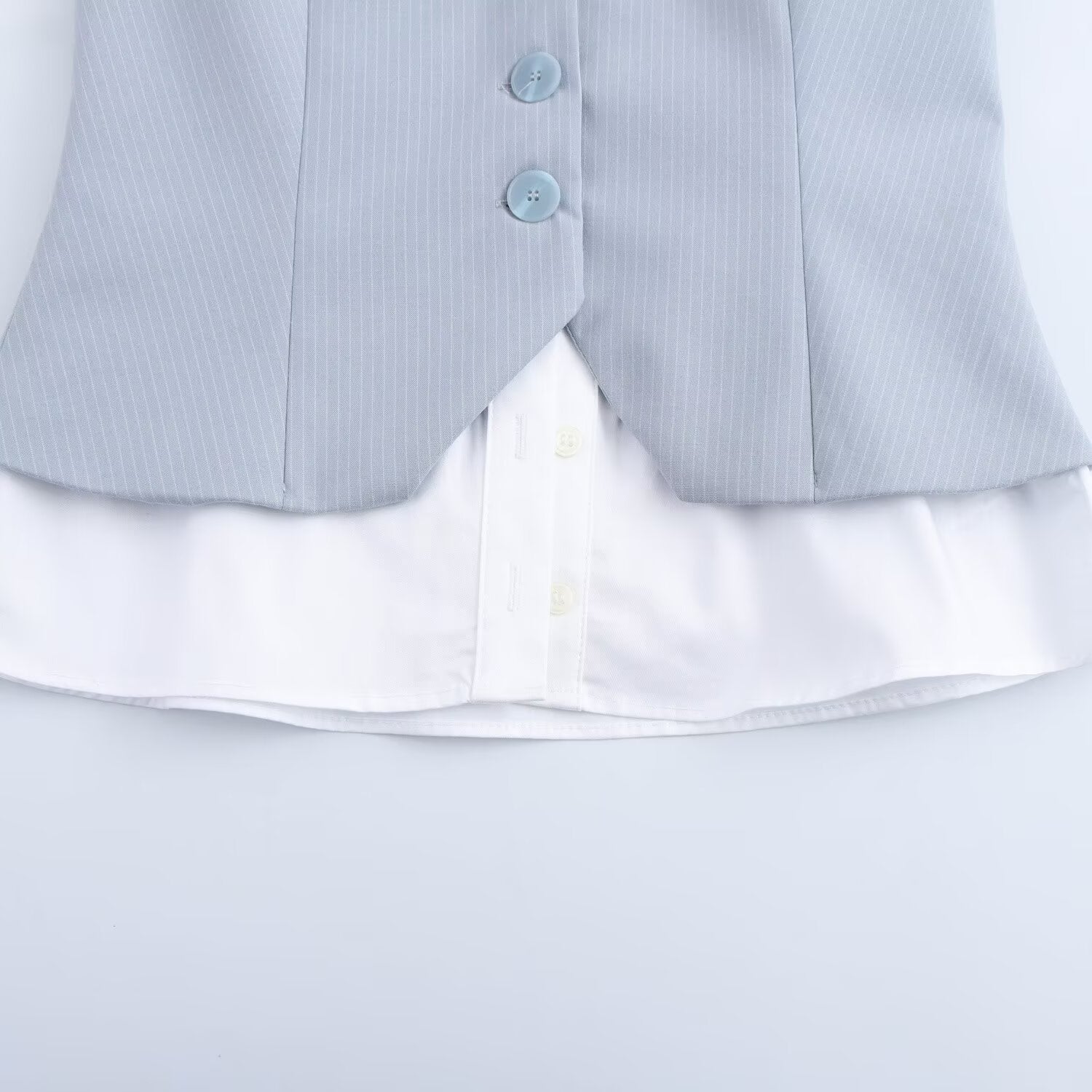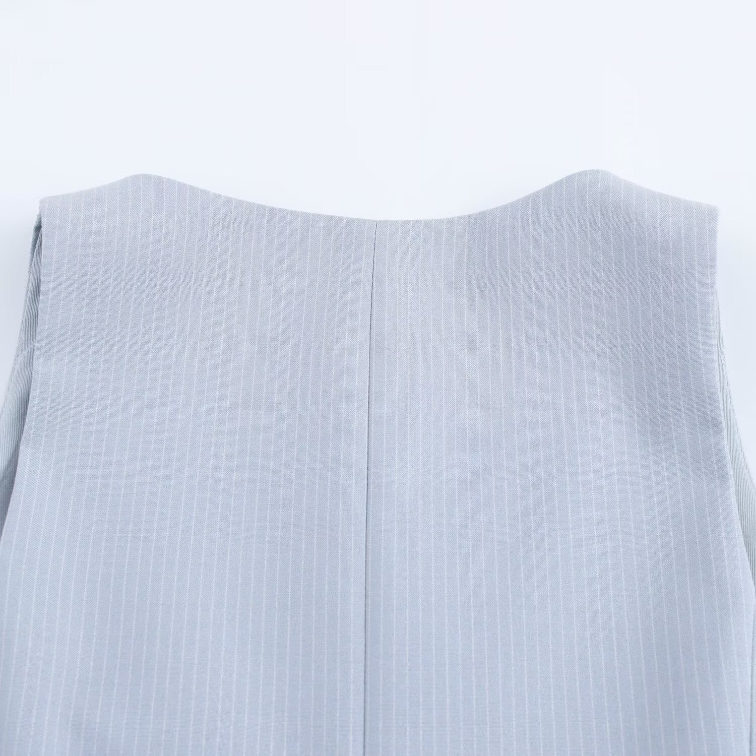 Women's 2025 new fashion slim fit short style spliced striped vest style top retro V Neck sleeveless women's vest chic top