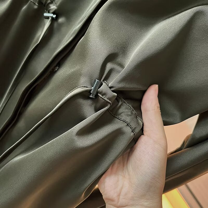 Women's 2025 new fashion with drawstring long sleeved shirt