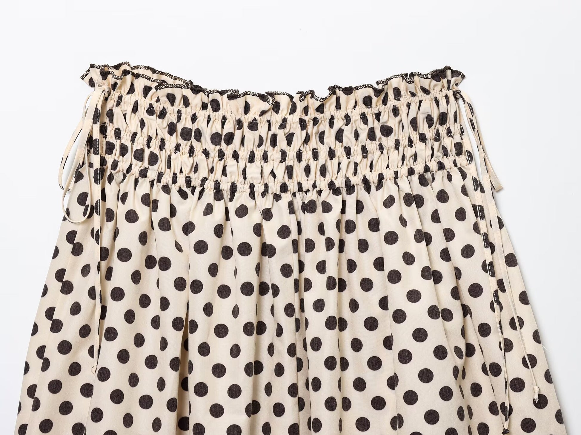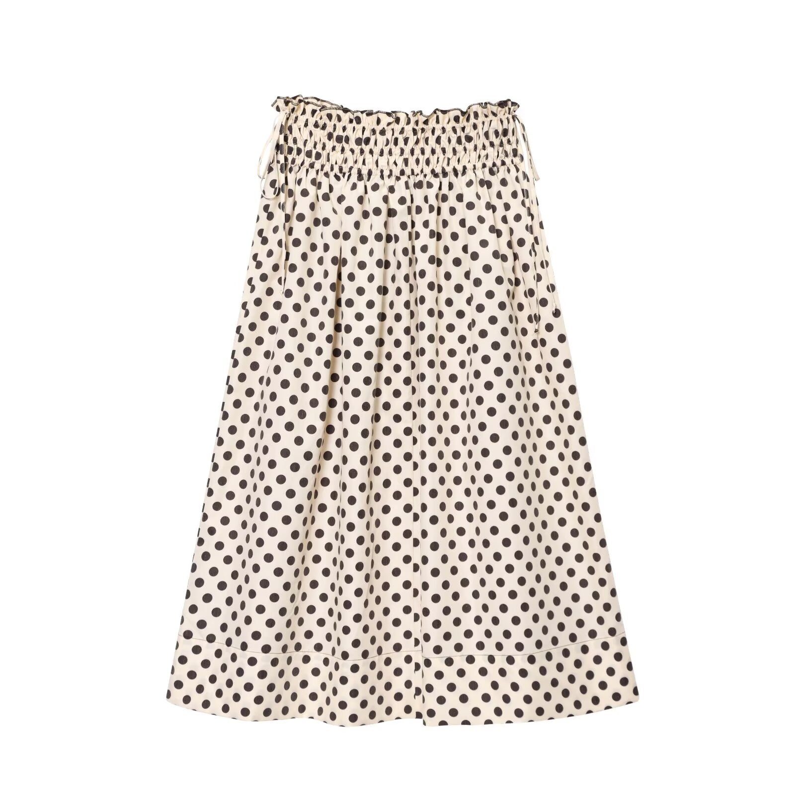 Women's chic Fashion polka dot printed elastic waist MIDI skirt