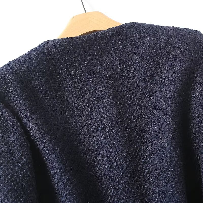 Women's gold button decoration short O Neck textured Coat