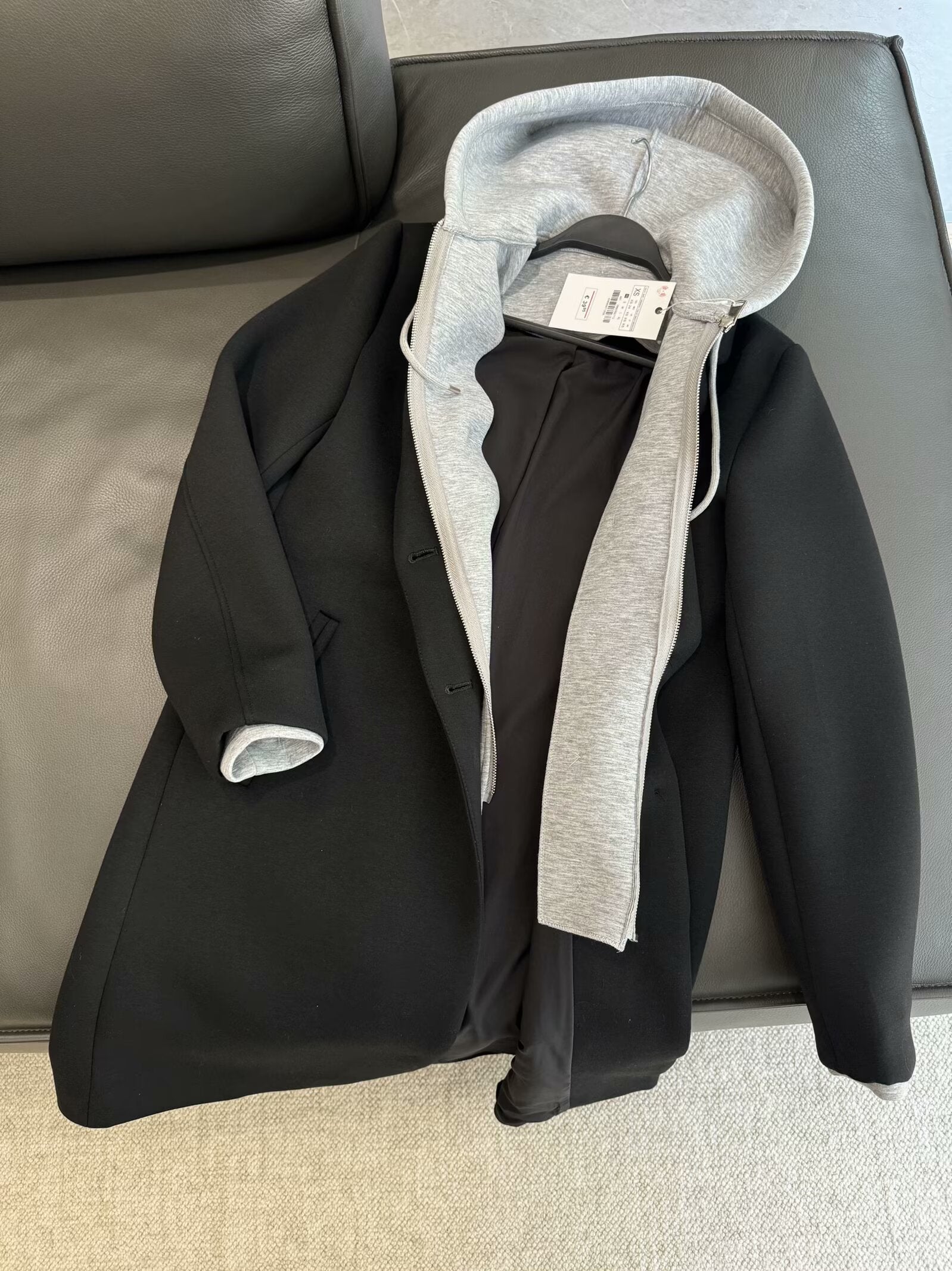 Women's loose long style detachable hooded patchwork coat