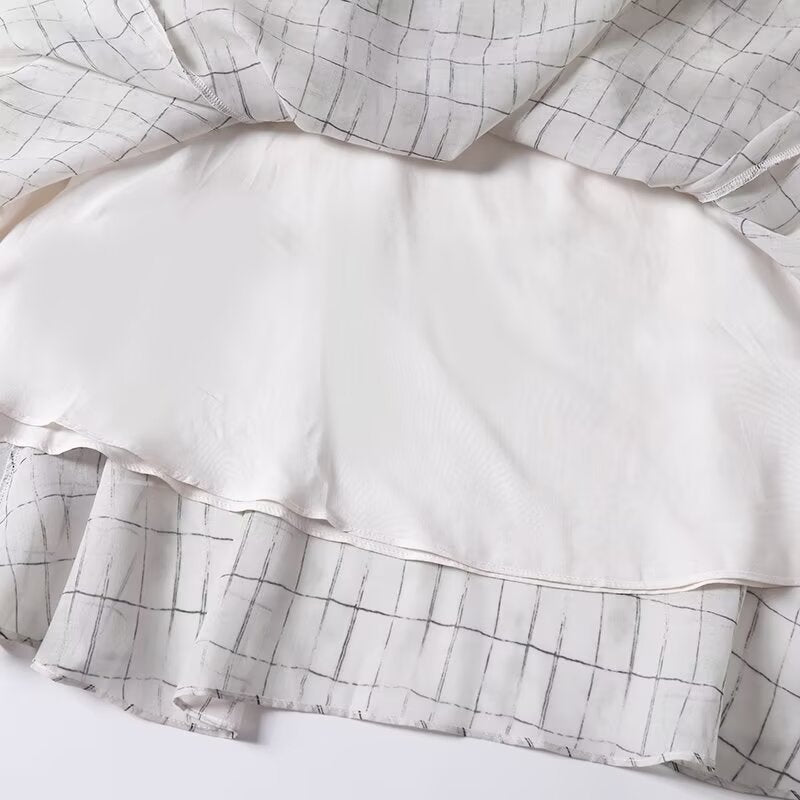 Women's new chic Fashion irregular hem plaid MIDI skirt