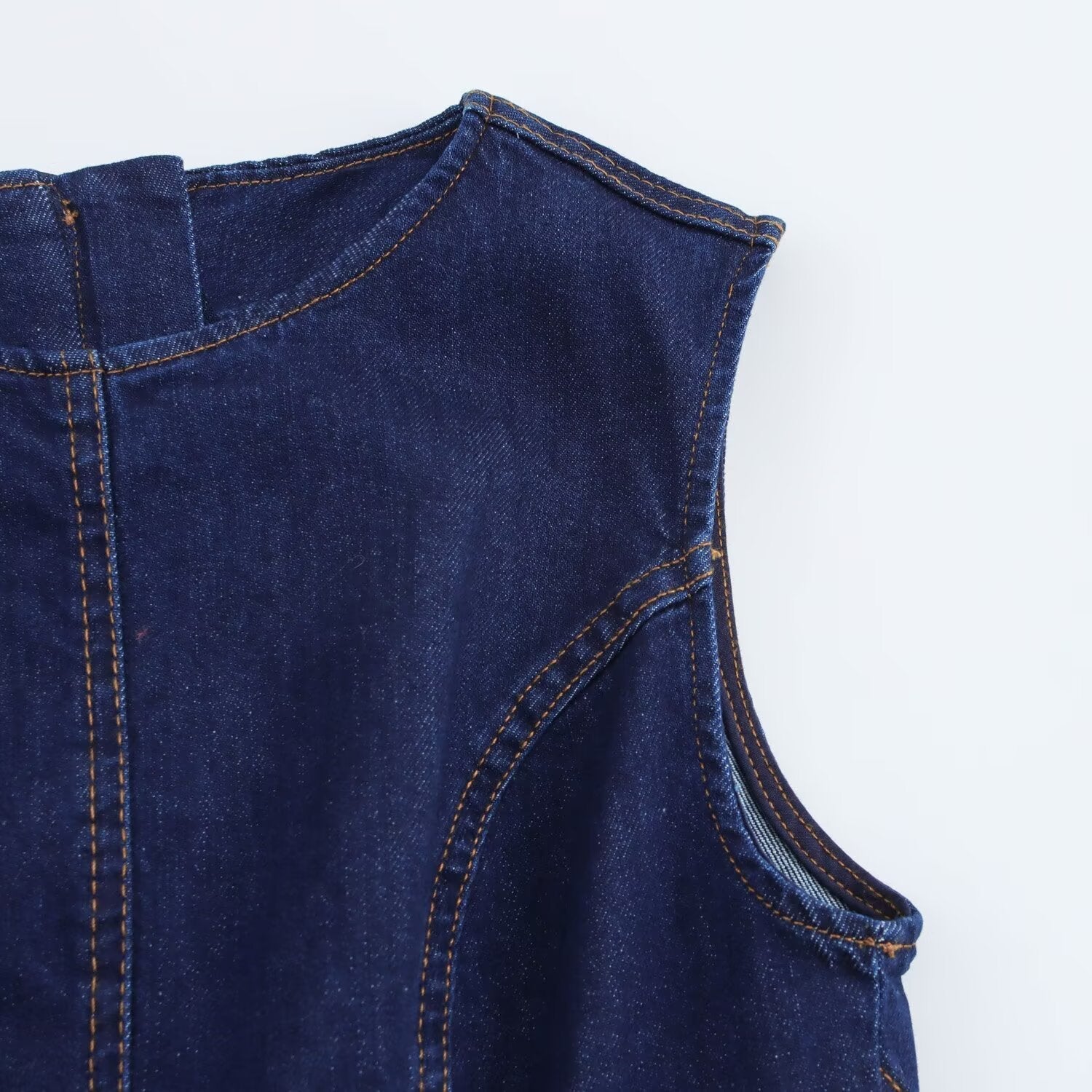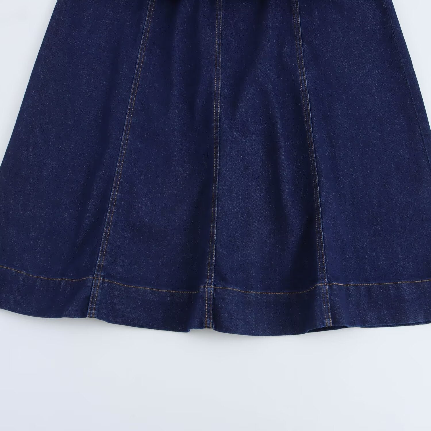 Women's new chic Fashion slim fit casual versatile wide pleated denim Midi dress retro round neck long sleeved women's dress Mujer