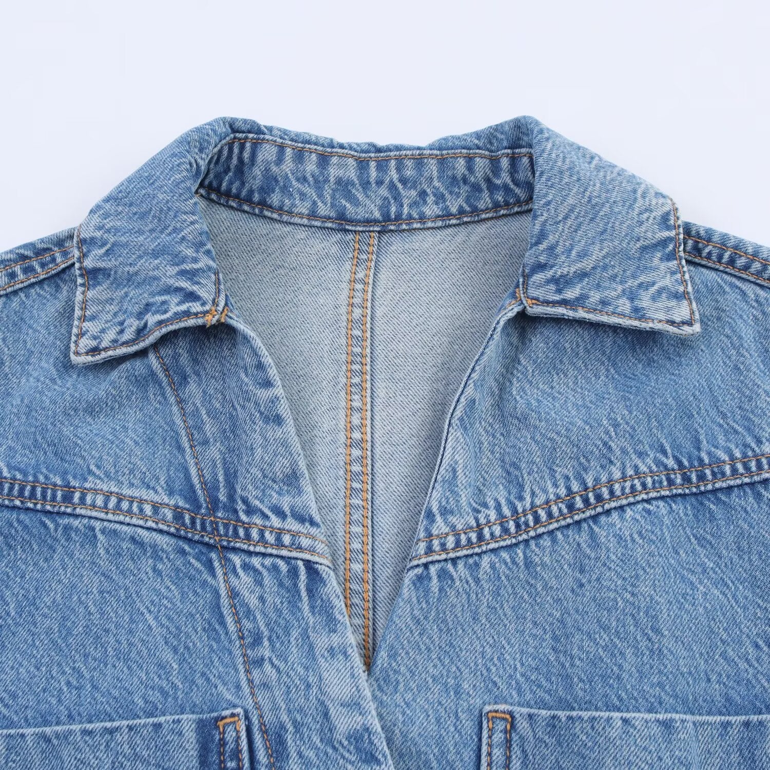 Women's New Fashion adjustable waist design long sleeved denim jumpsuit