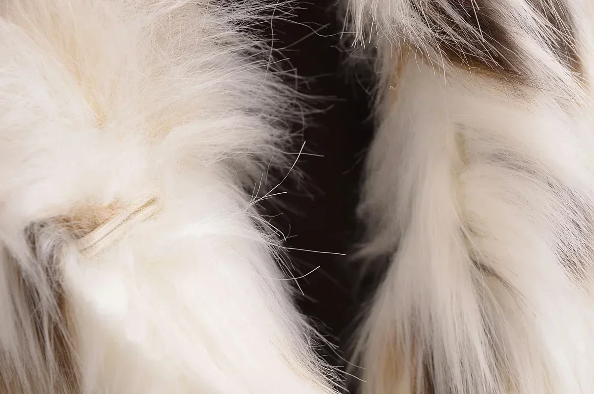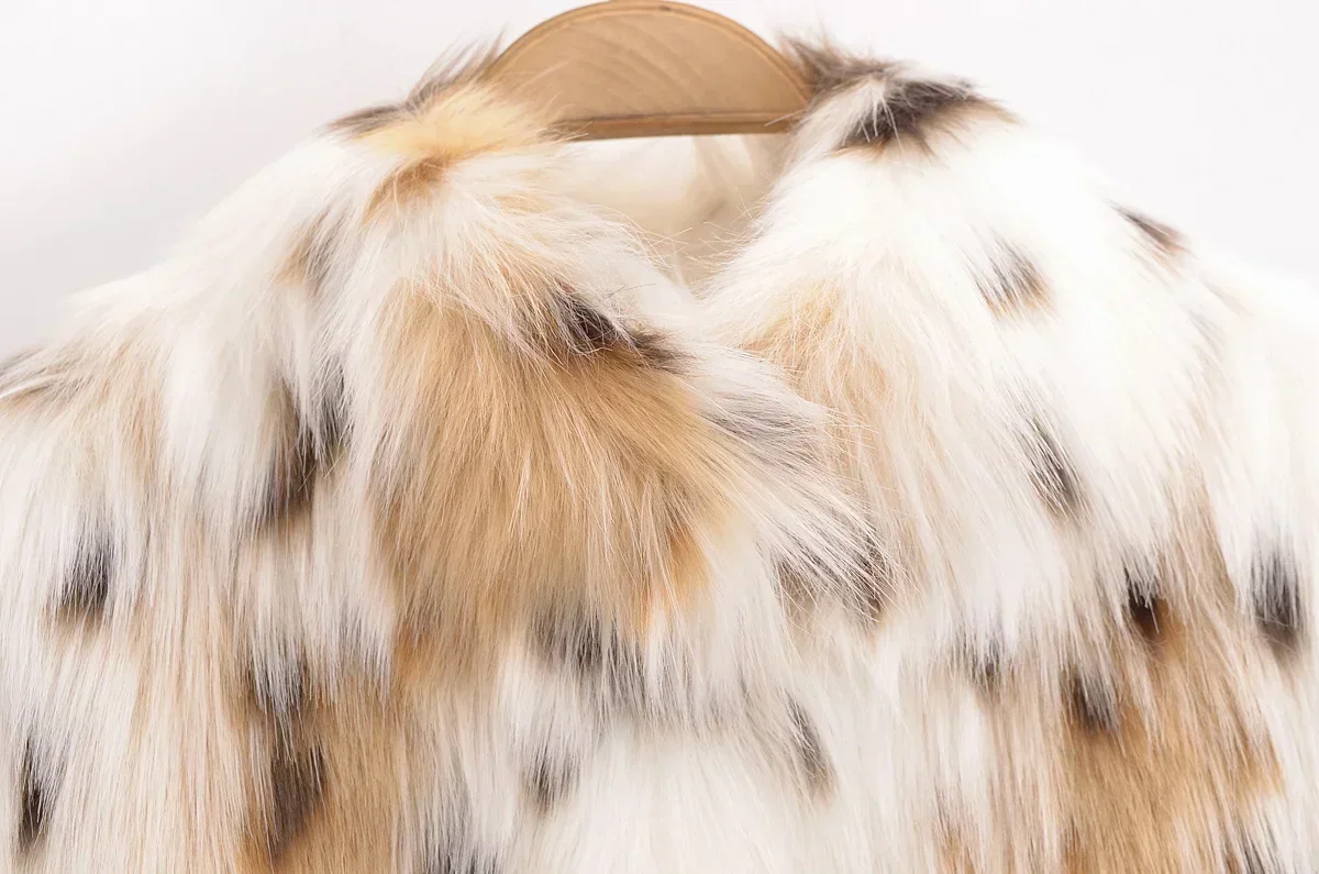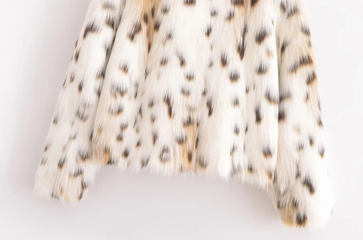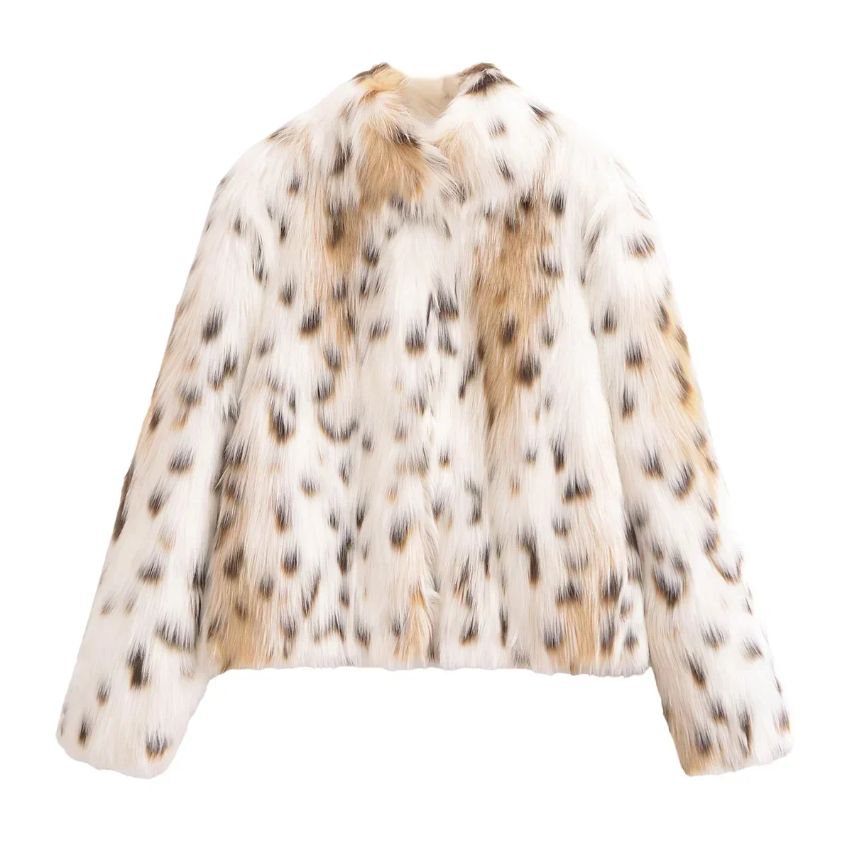 Women's new fashion artificial fur effect short warm print striped fleece coat retro long sleeved pocket women's coat chic top
