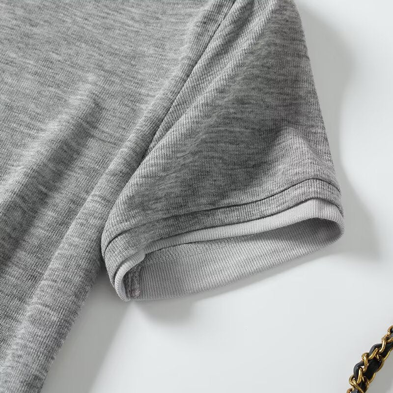 Women's New Fashion Basic Style Double Color Edge O Neck Short sleeved T-shirt