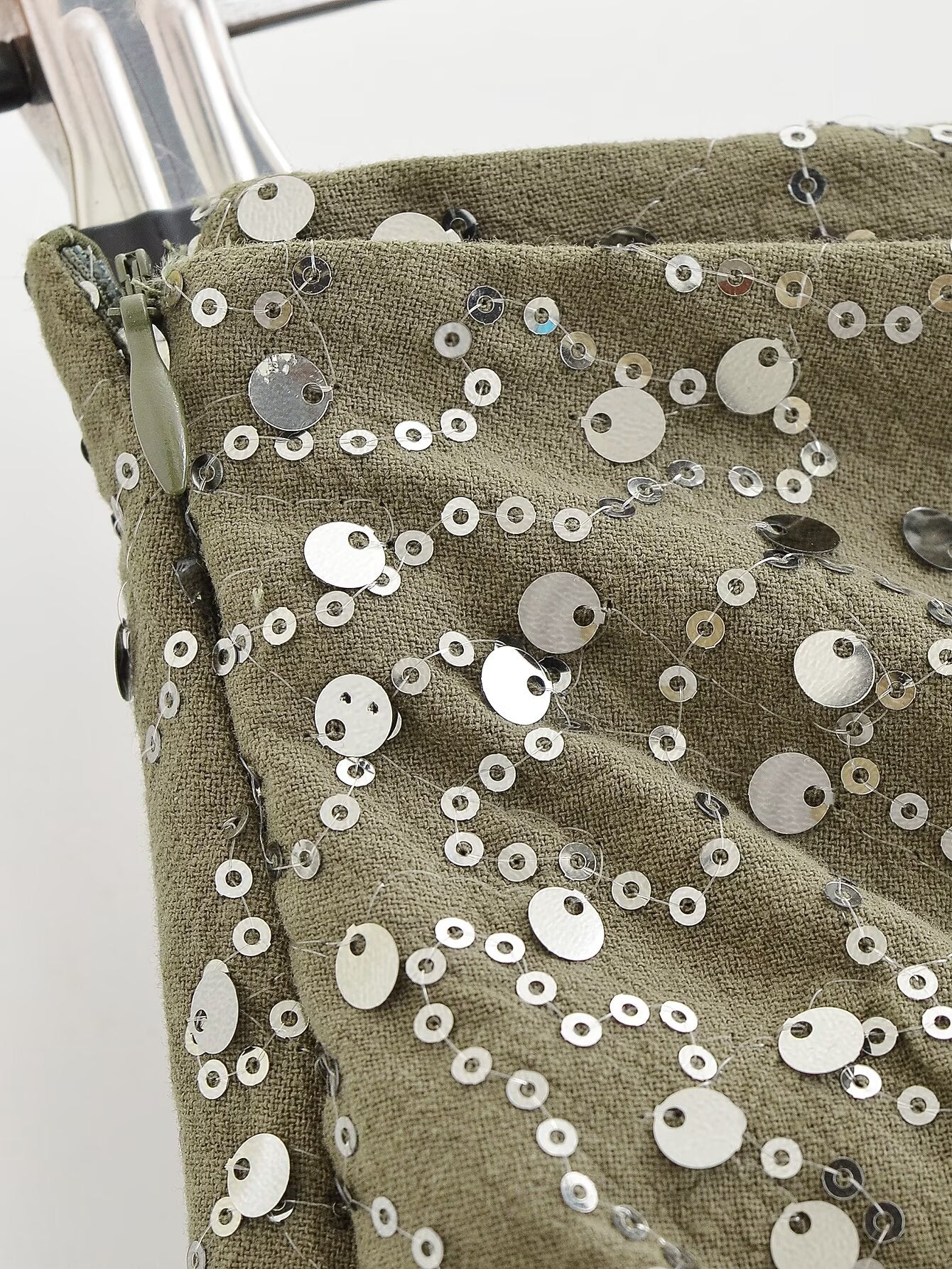 Women's new fashion bead decoration slim pleated Shorts Skirts