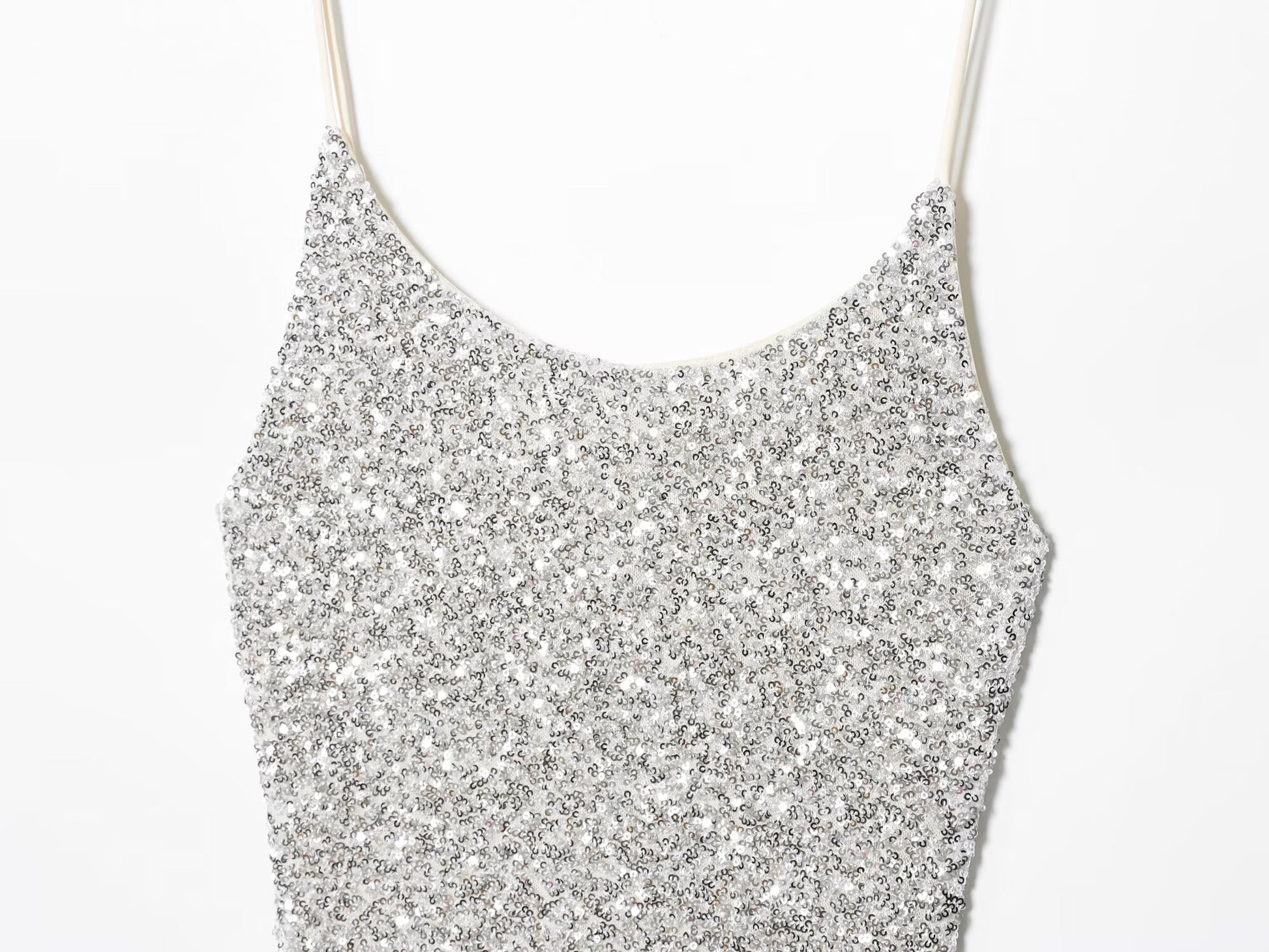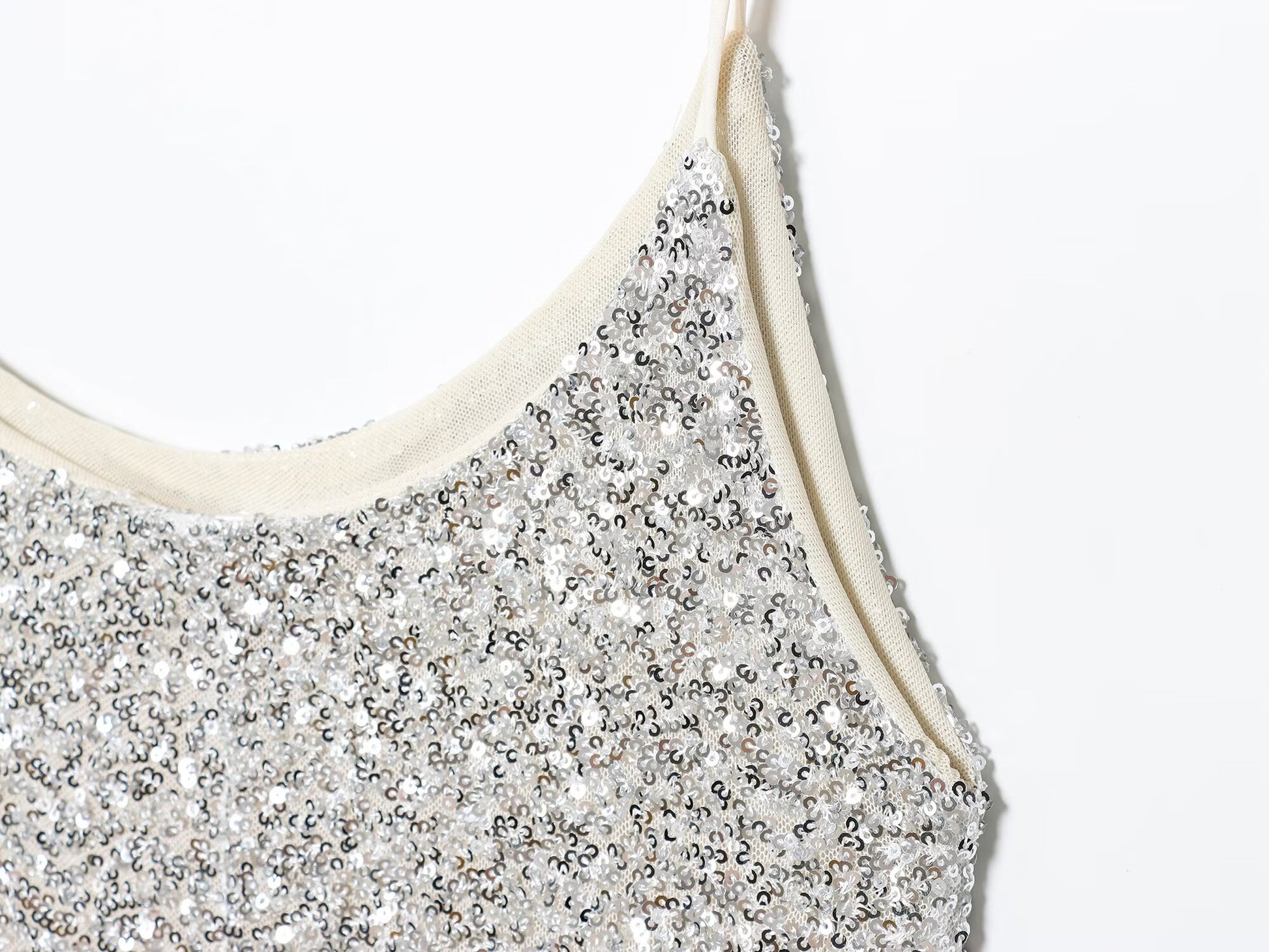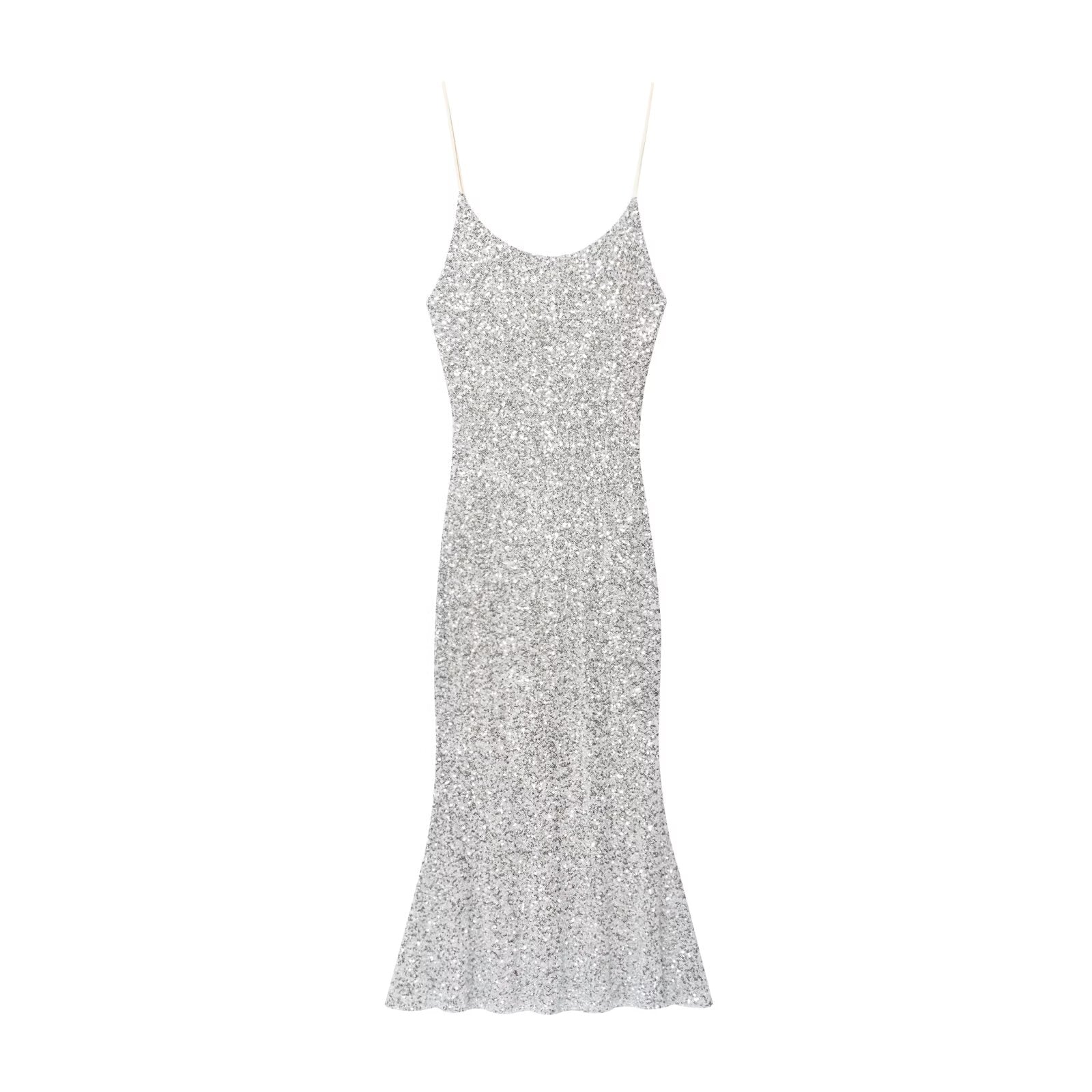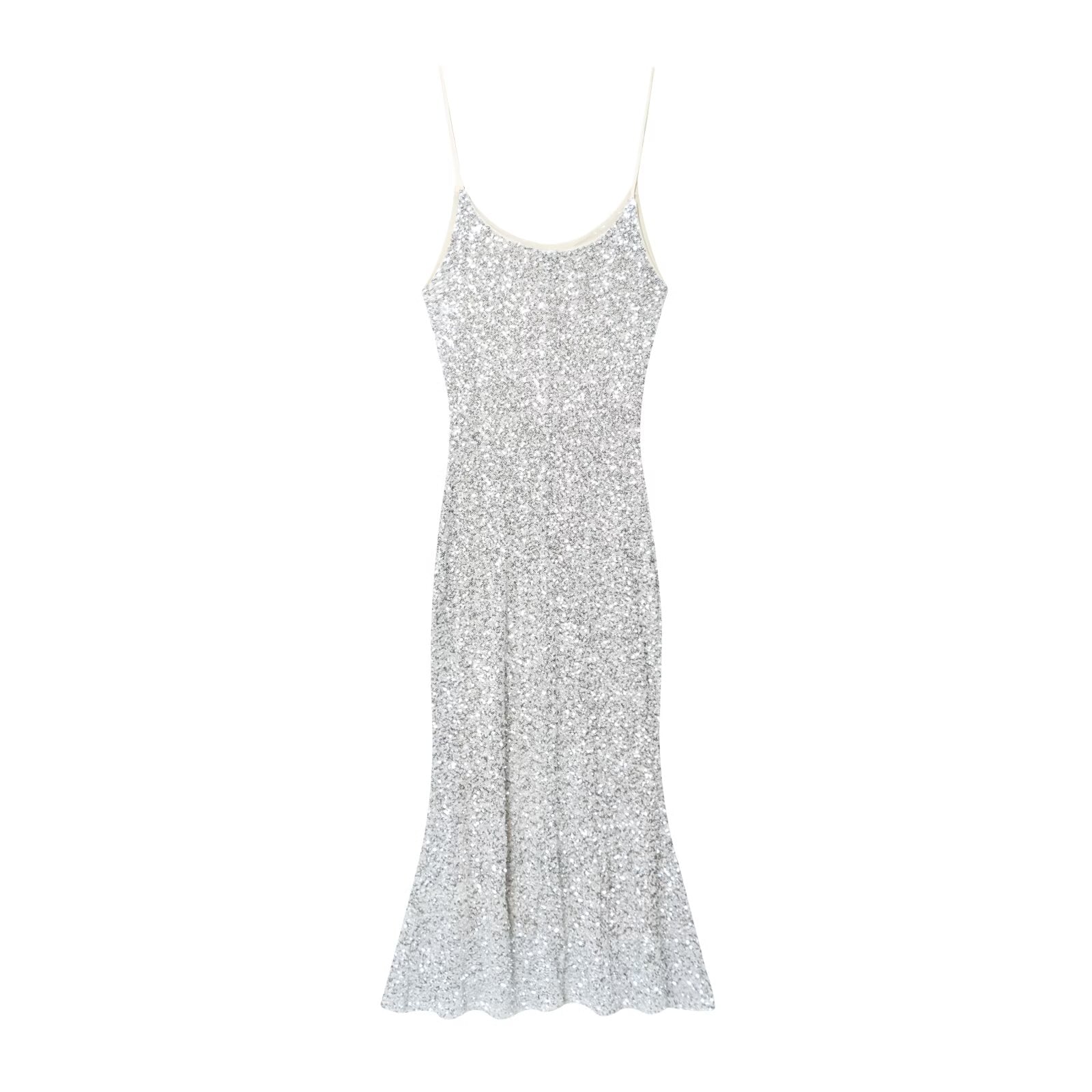 Women's New Fashion Bead Decoration Underwear Style suspender Midi Dress