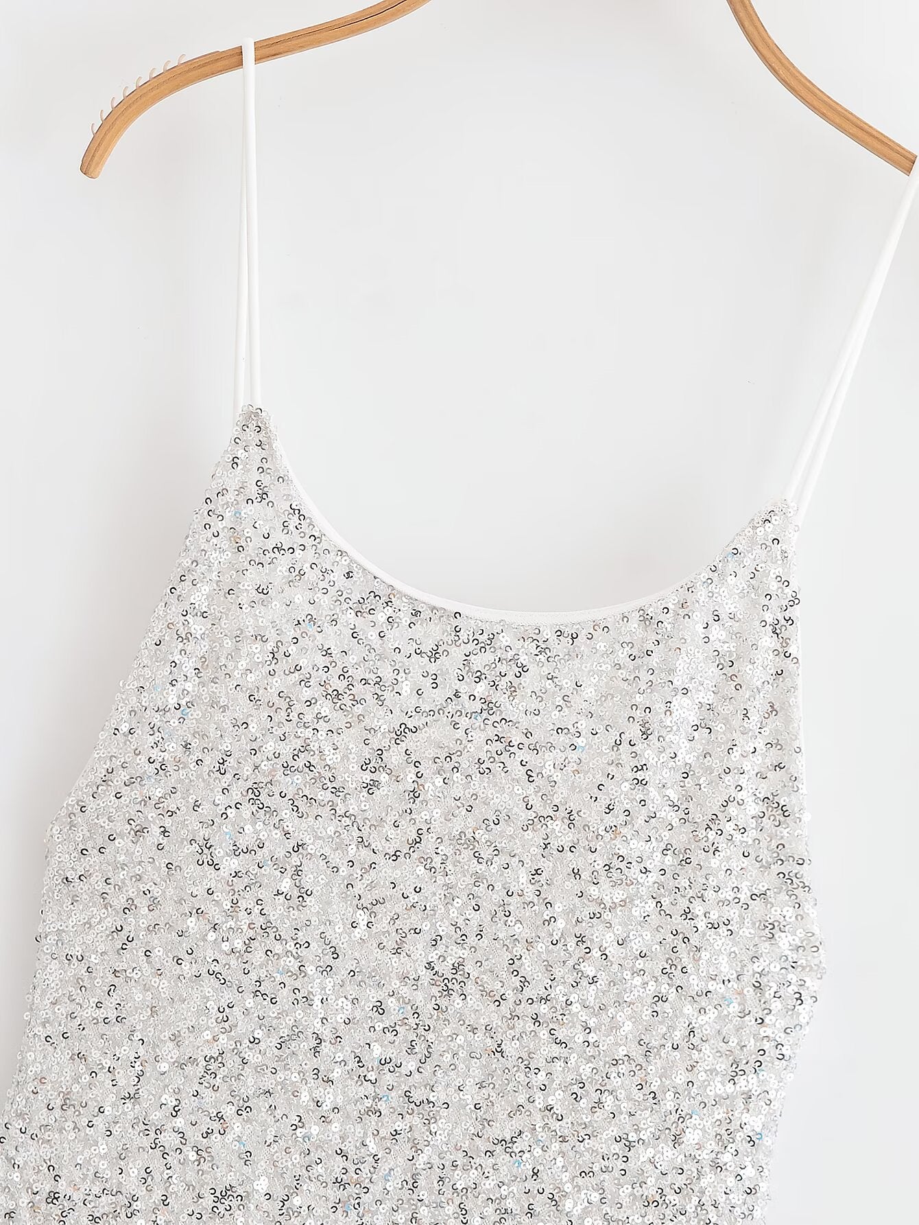 Women's New Fashion Bead Decorative Tight suspender Midi Dress