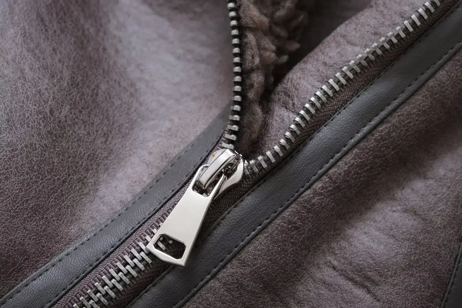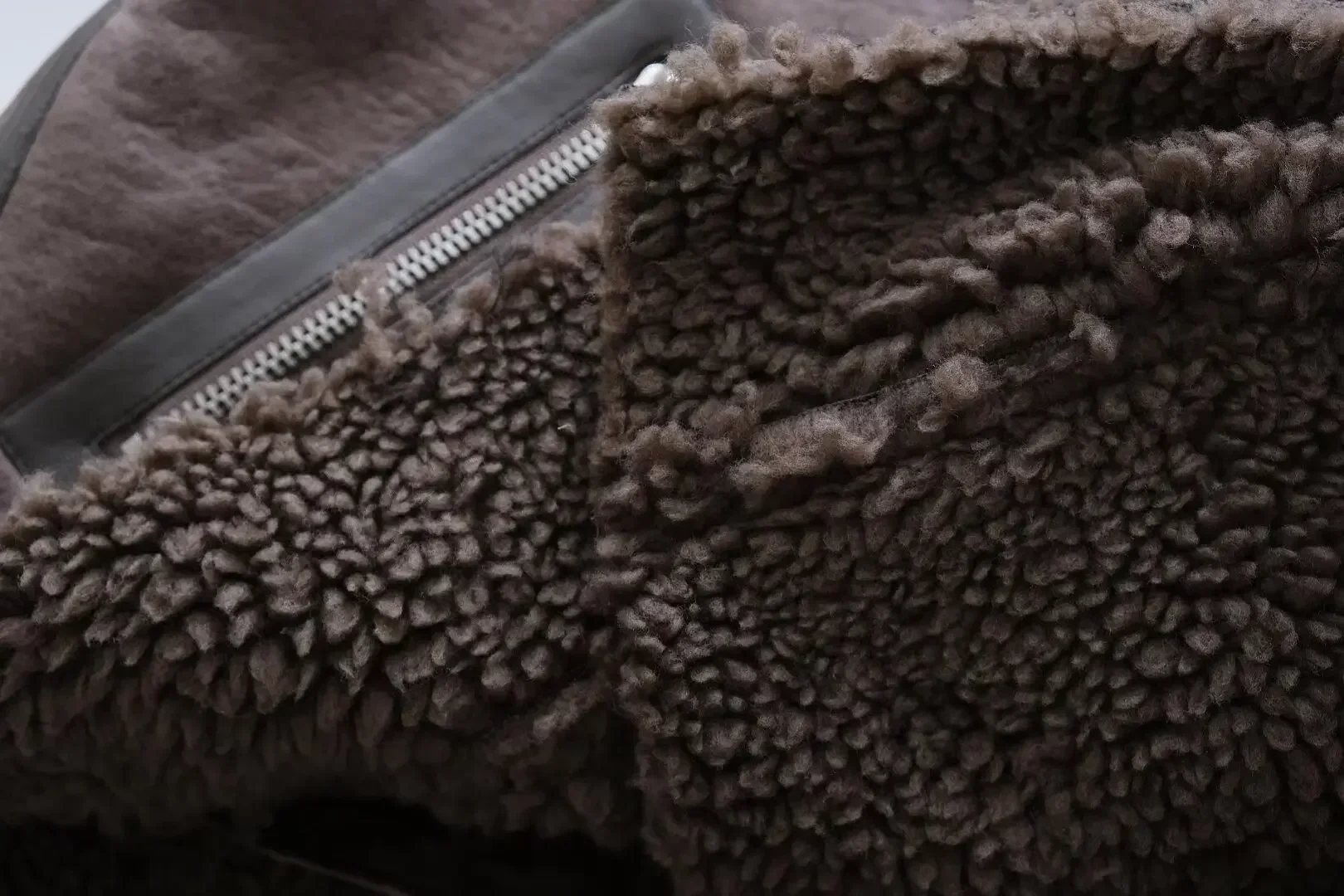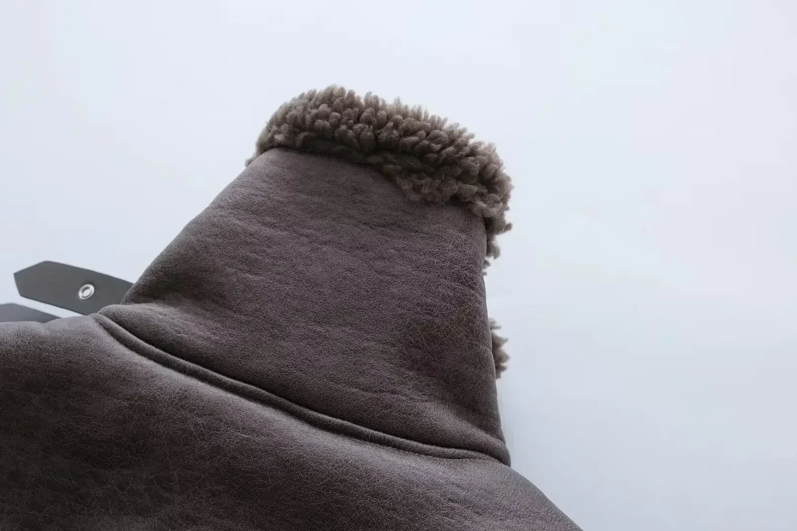 Women's new fashion belt decoration casual heavy industry Fur Faux Leather jacket retro long sleeved zipper Female Coat chic top