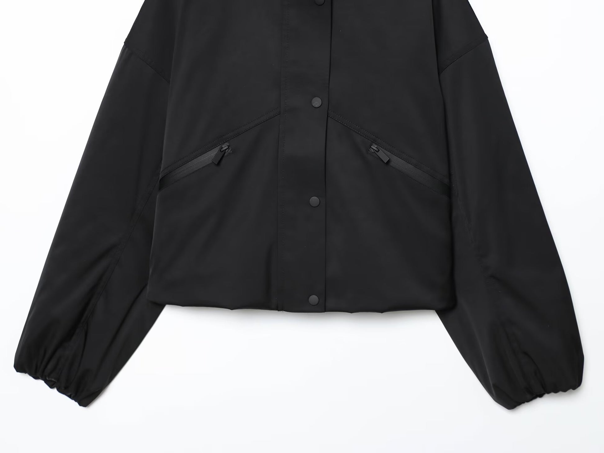 Women's new fashion black hooded waterproof windproof jacket Coat