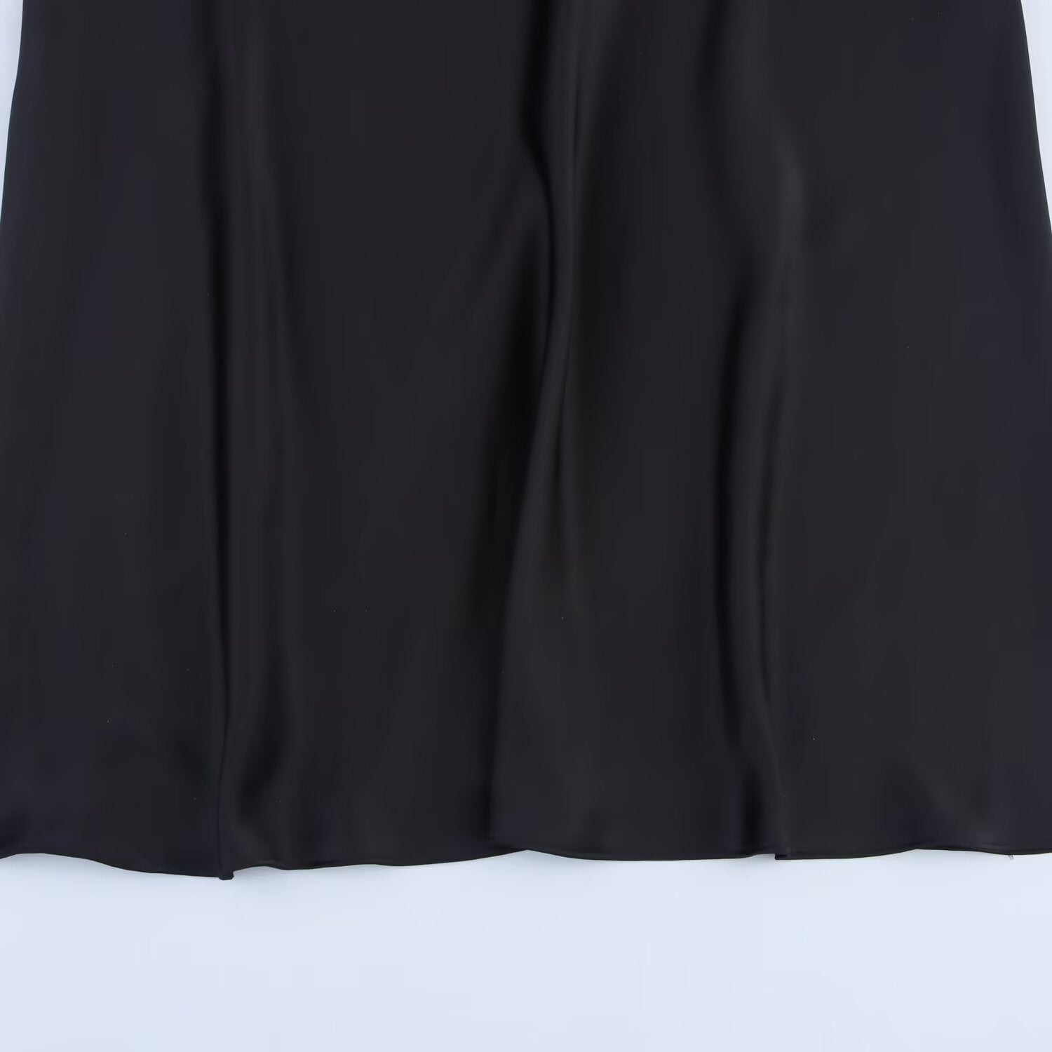 Women's New Fashion Black Satin Texture suspender Midi Dress