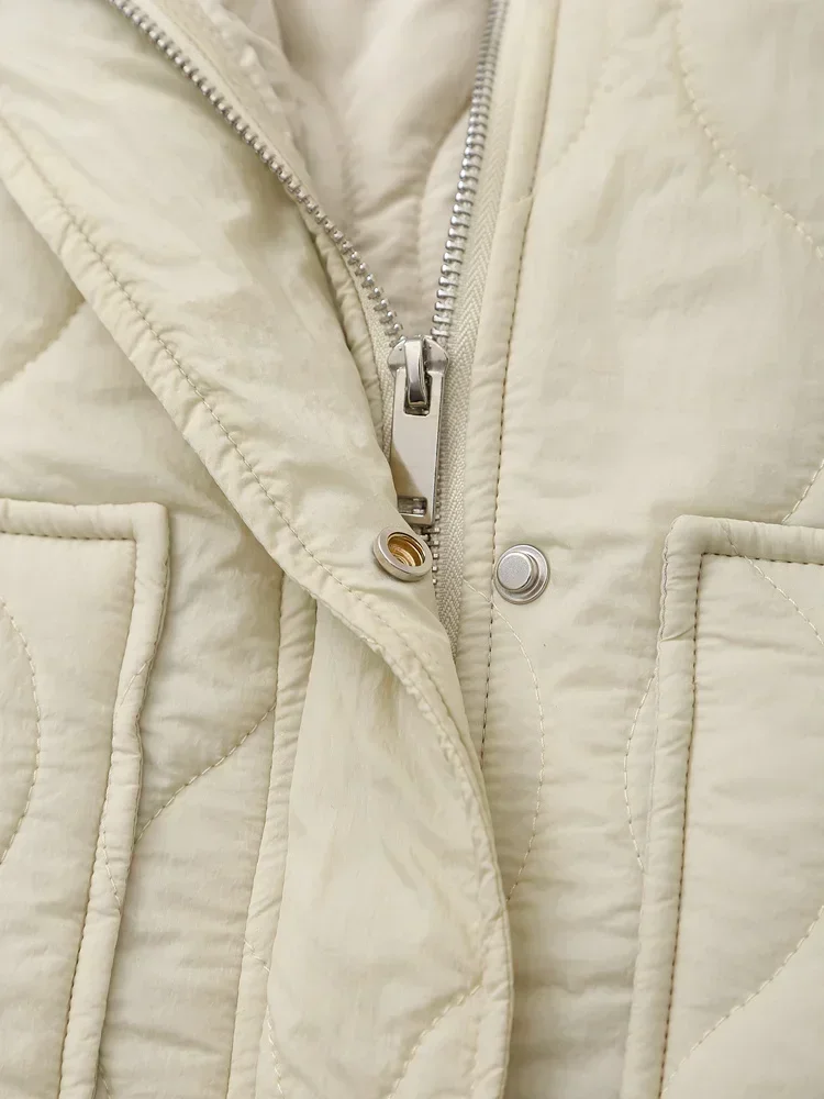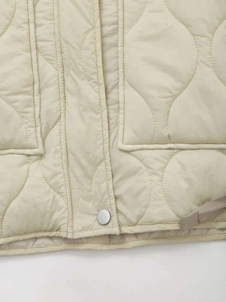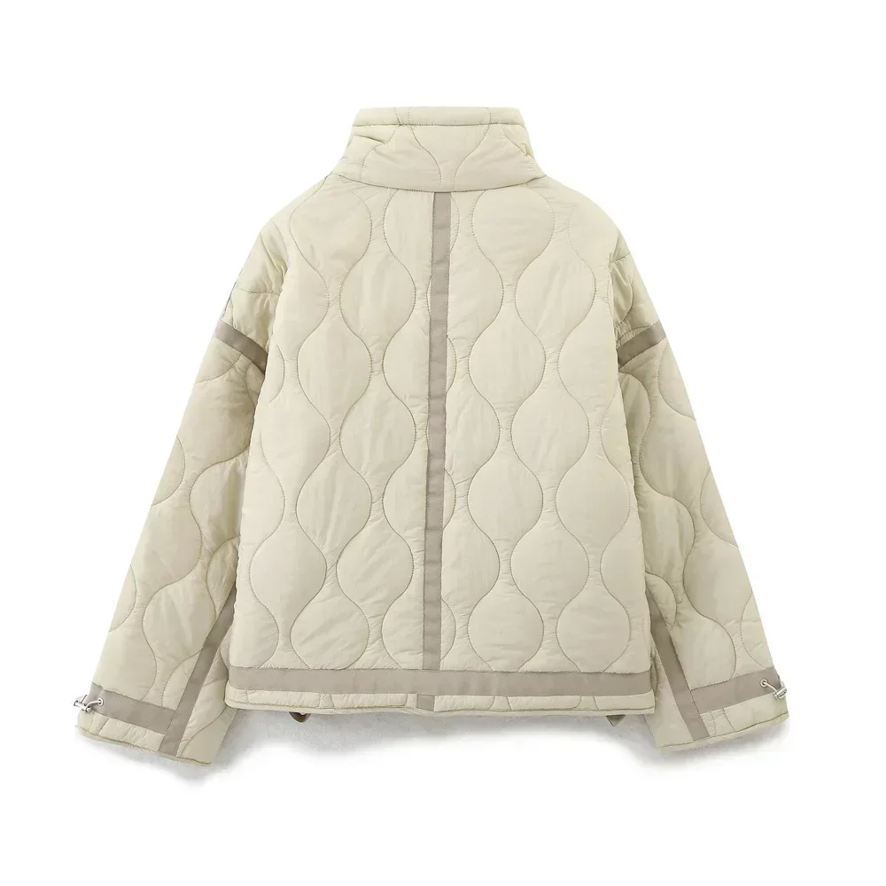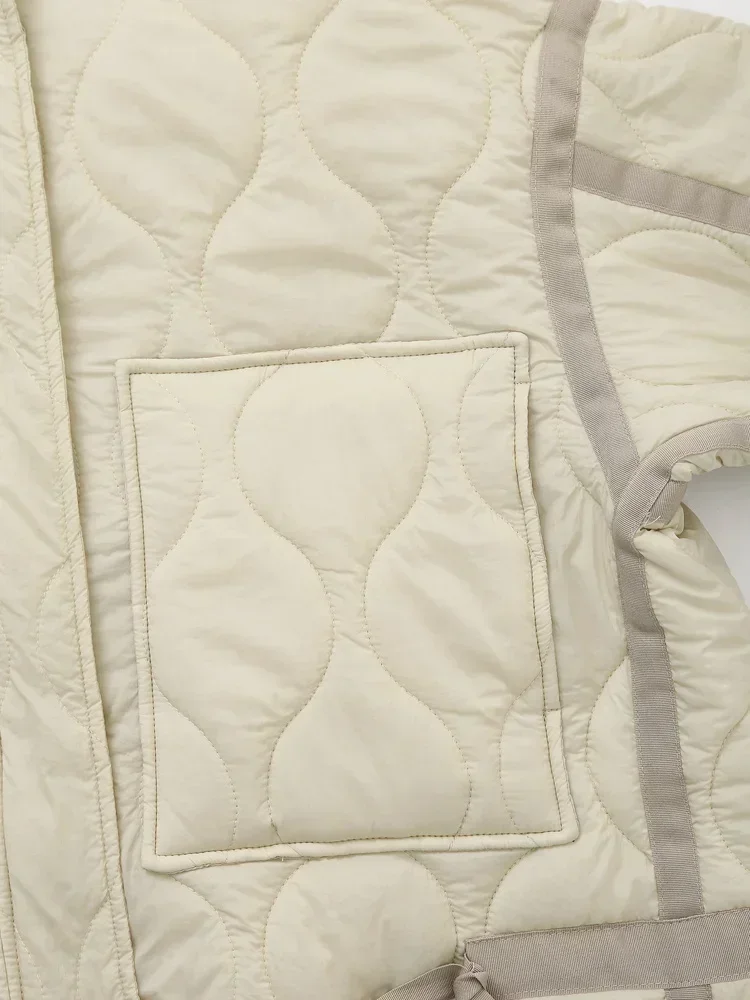 Women's new fashion bow decoration loose stand collar thick cotton jacket coat retro long sleeved pocket women's coat chic top