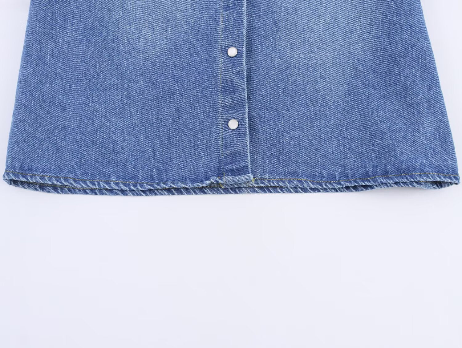 Women's new fashion bow decoration short sleeved denim shirt+Skirts suit
