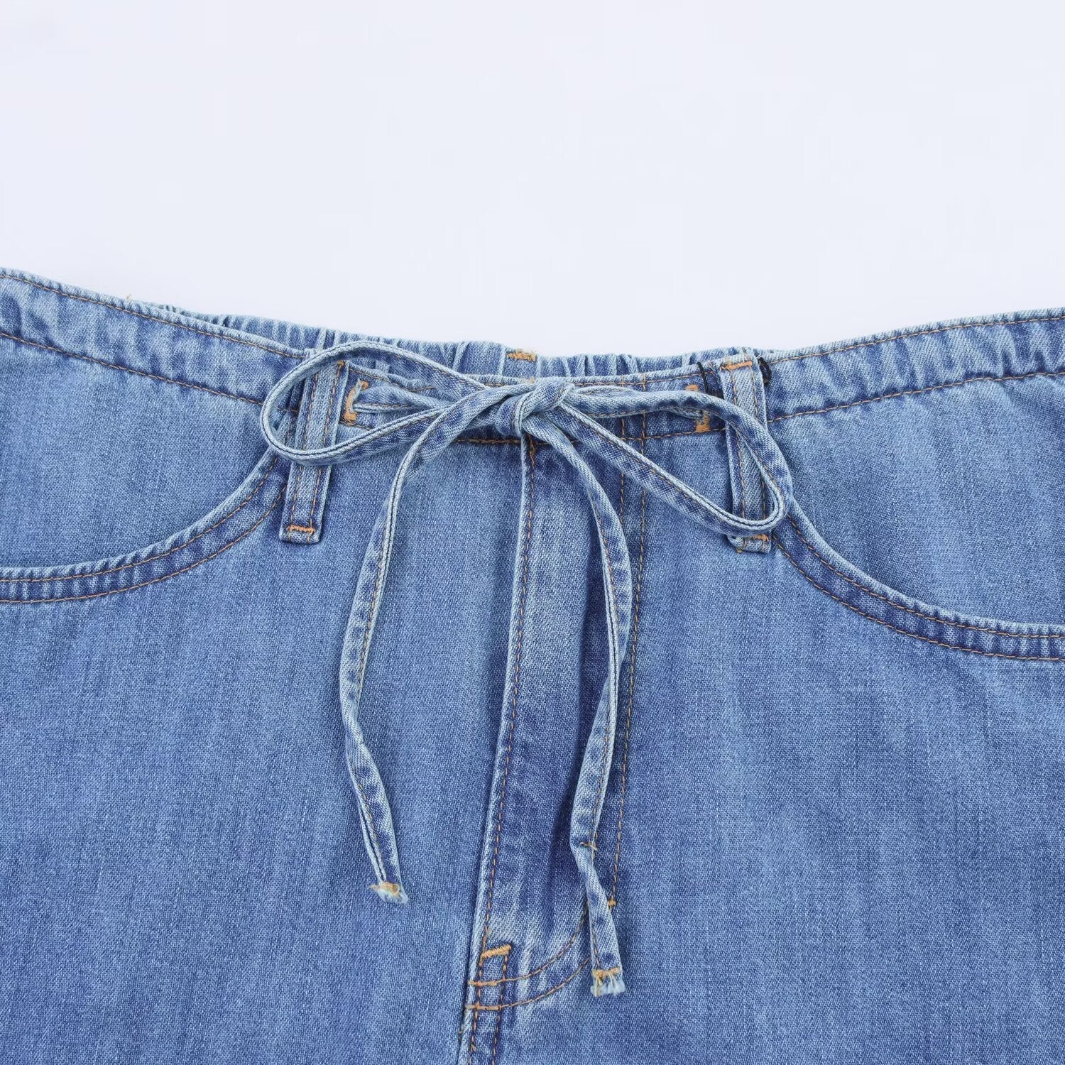 Women's' New Fashion bow decoration slim elastic waist denim mini skirt