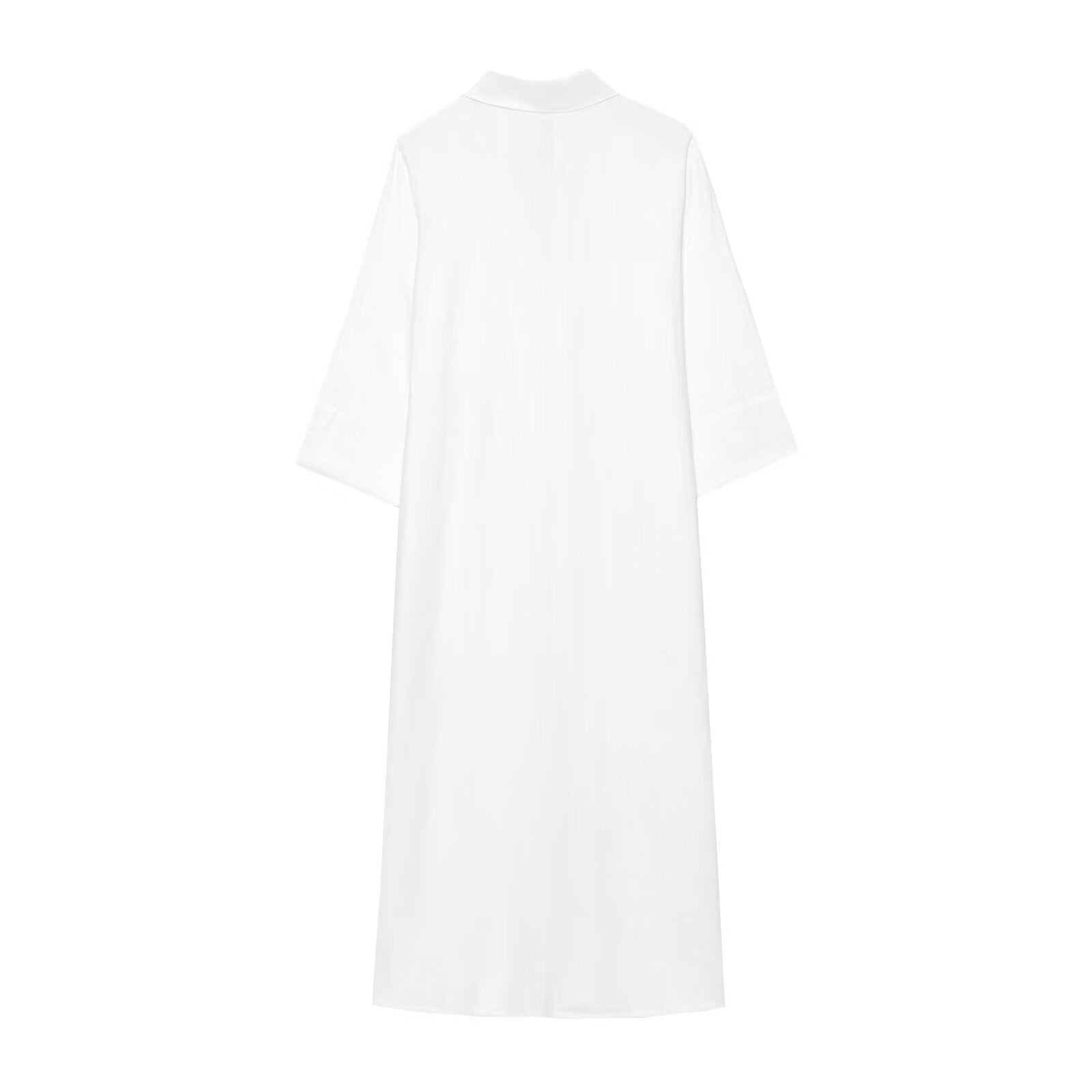 Women's new fashion buckle decoration loose linen blend shirt style MIDI dress