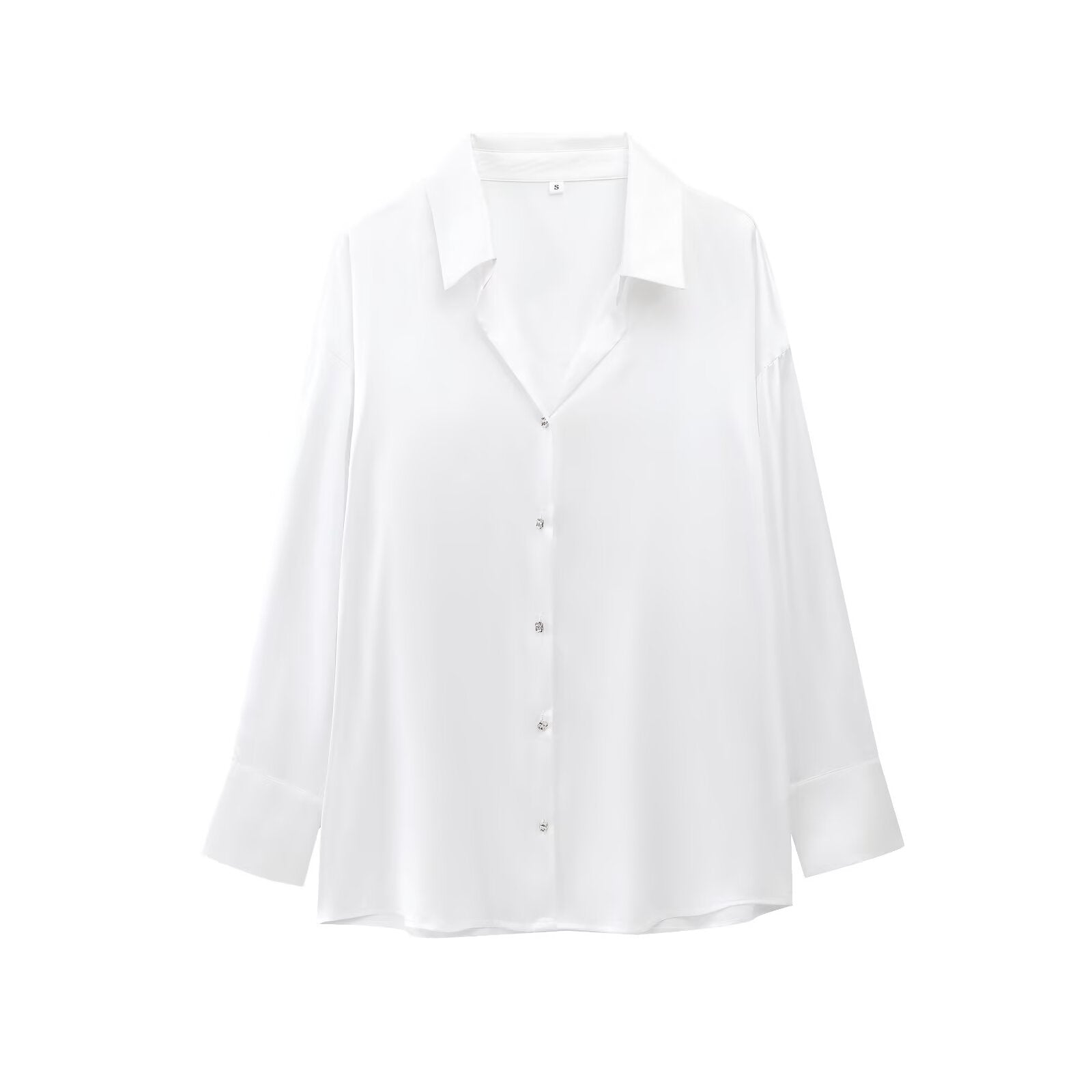 Women's new fashion casual single breasted shirt long sleeved satin textured shirt