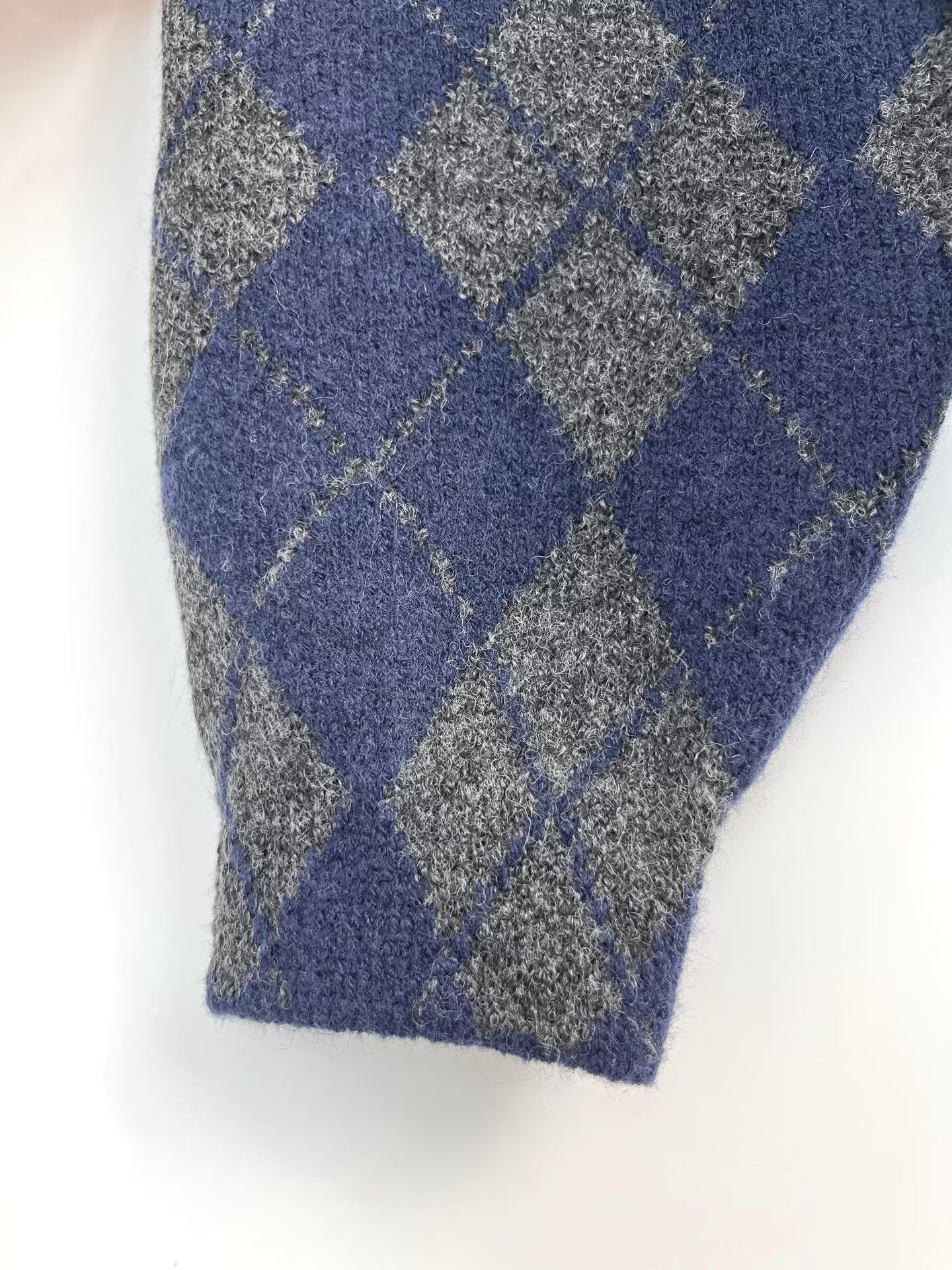 Women's new fashion diamond checkered knitted pilot jacket Coat