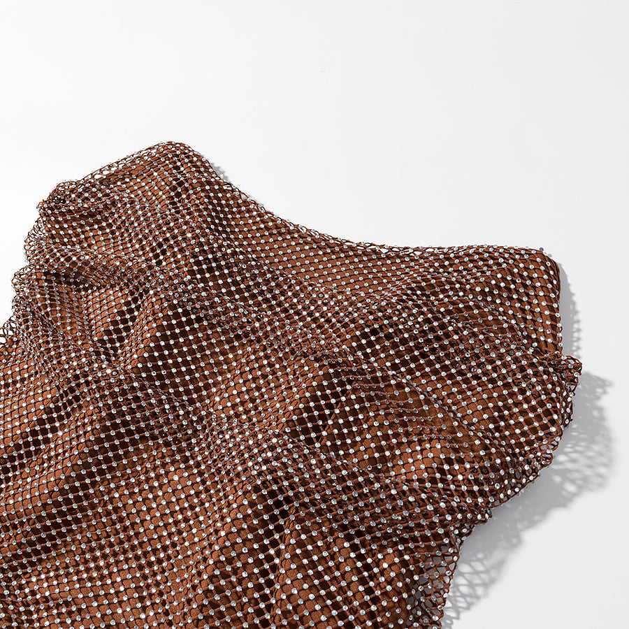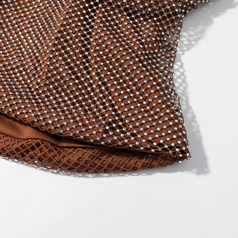 Women's new fashion diamond decorative tube top+mini overskirt suit.
