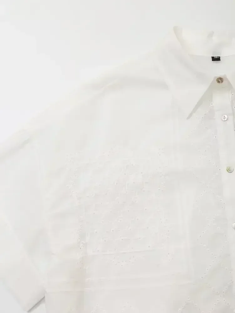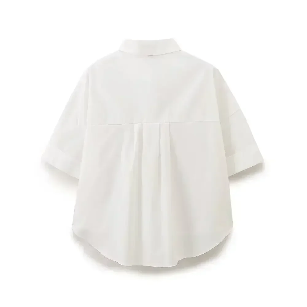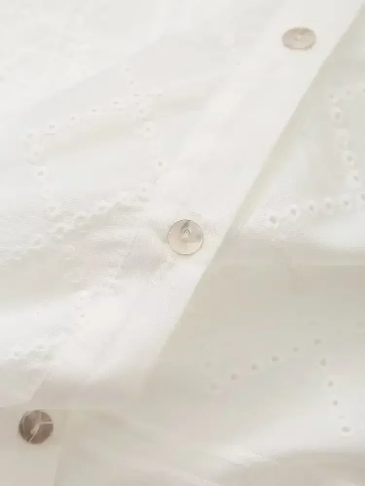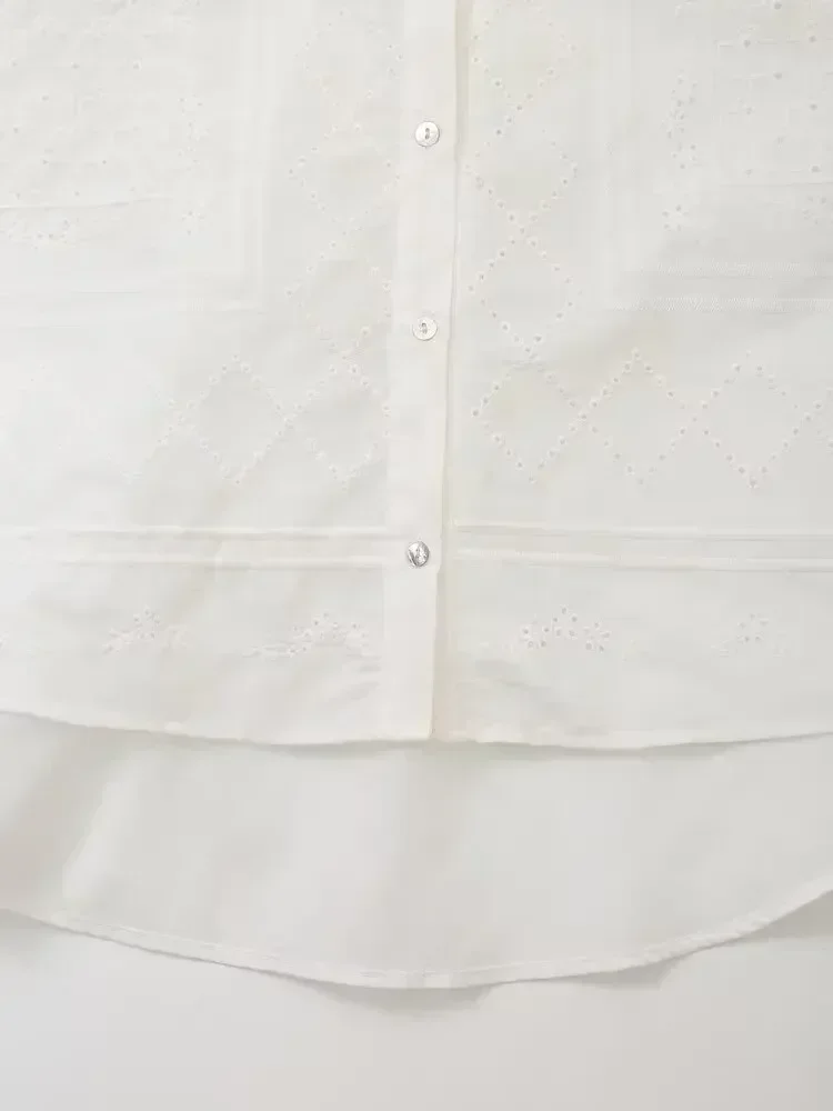 Women's new fashion embroidery decoration casual asymmetrical poplin shirt retro long sleeved button up women's shirt chic top