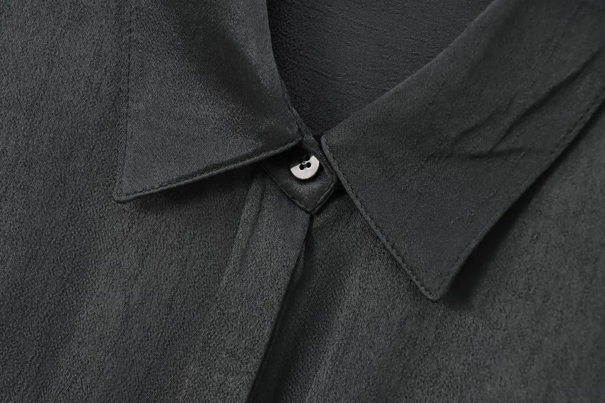 Women's new fashion flip decoration casual satin texture asymmetric shirt retro long sleeved button up women's shirt chic top
