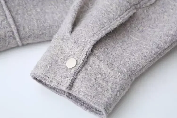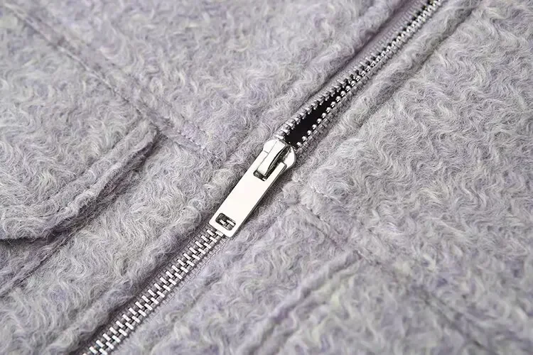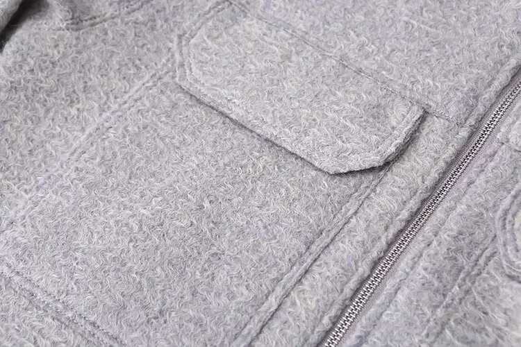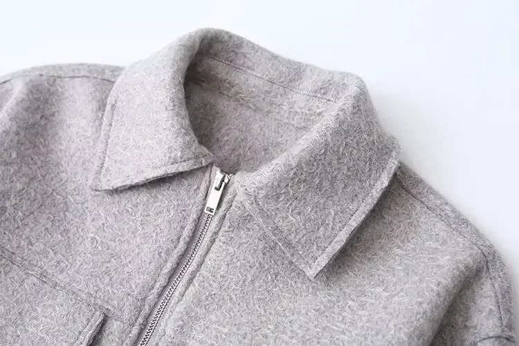 Women's new fashion flip pocket decoration casual short lapel Woolen jacket coat retro long sleeved zipper women's coat chic top