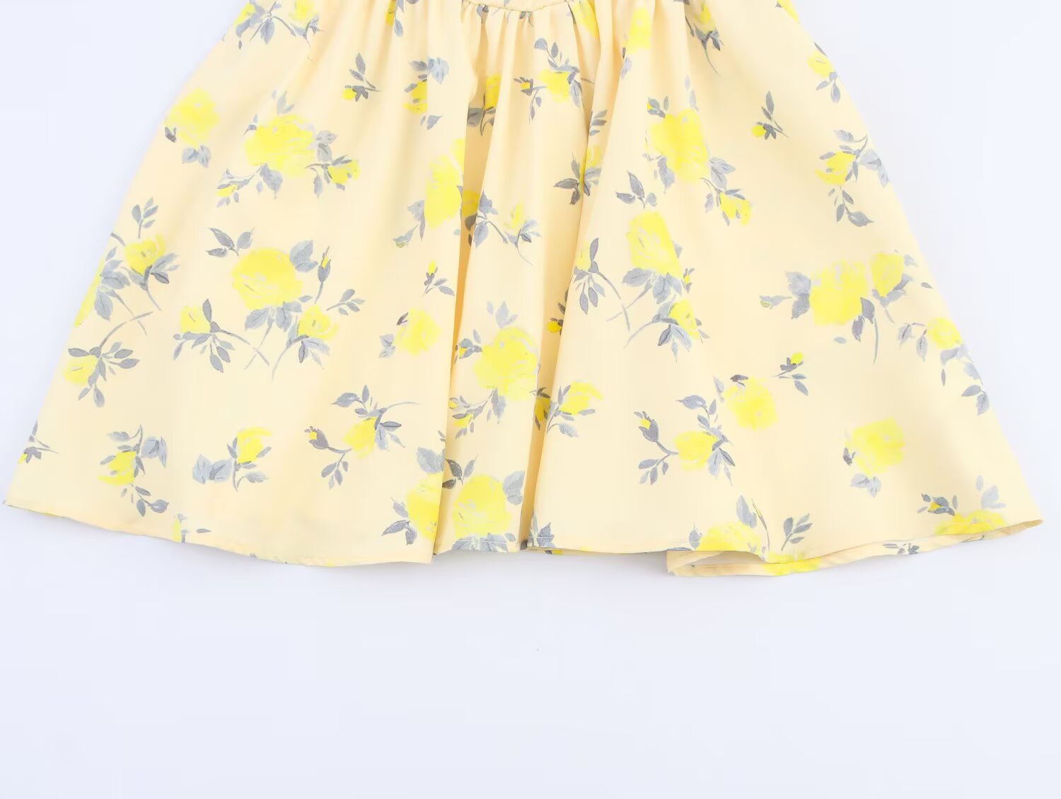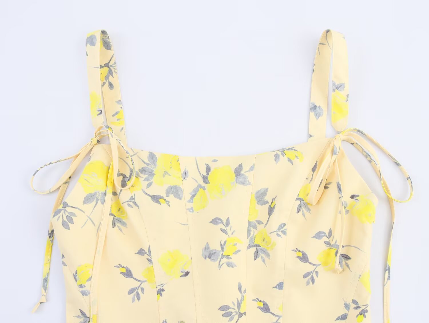 Women's New Fashion Flower Printed Poplin suspender Mini Dress