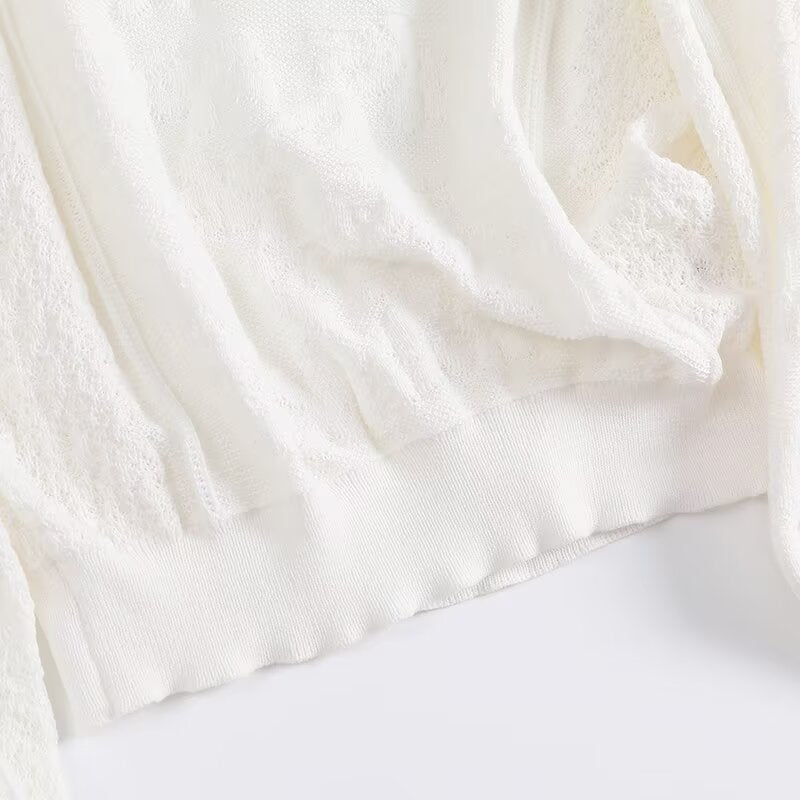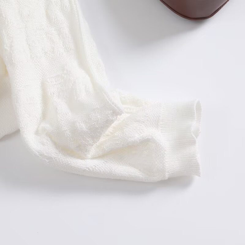 Women's new fashion hollow lace O-Neck long sleeved knitted top