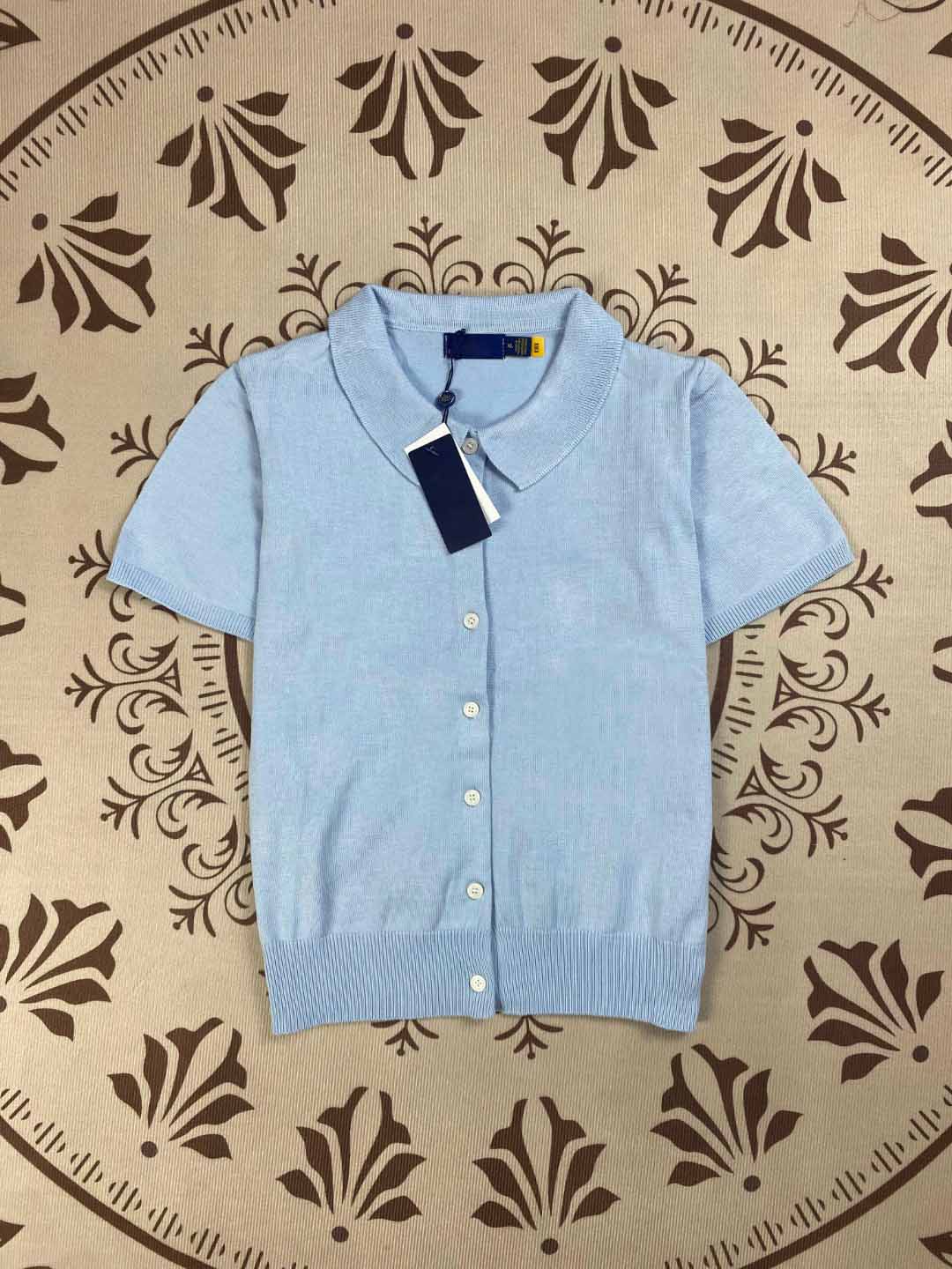 Women's New Fashion Joker Embroidered Cotton Knitted Lapel Short Sleeve Cardigan