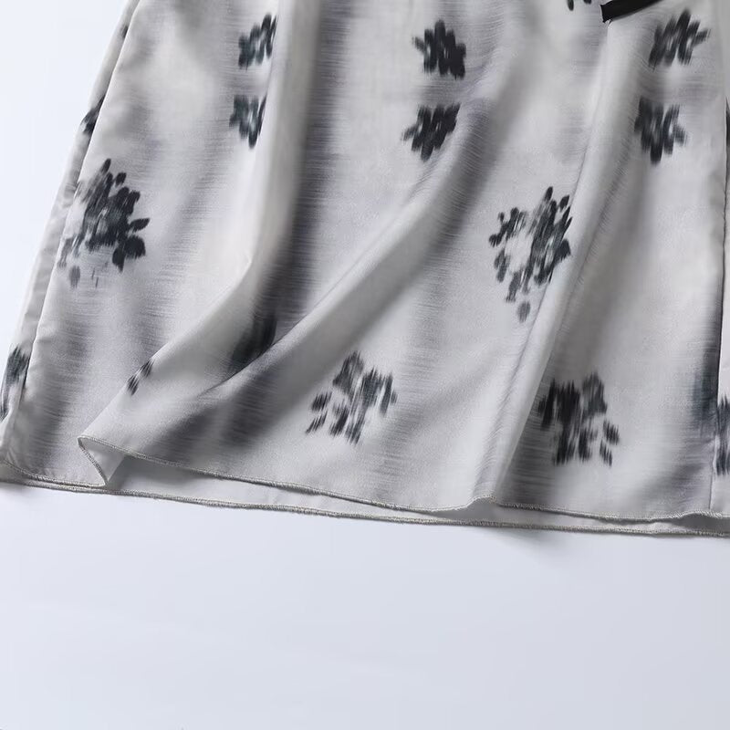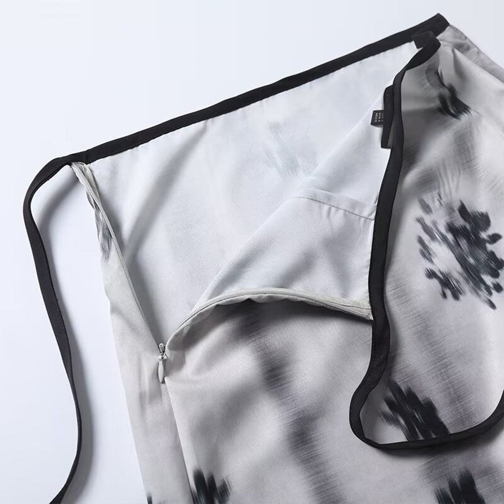 Women's new fashion Knot Lace up waist design printed MIDI skirt