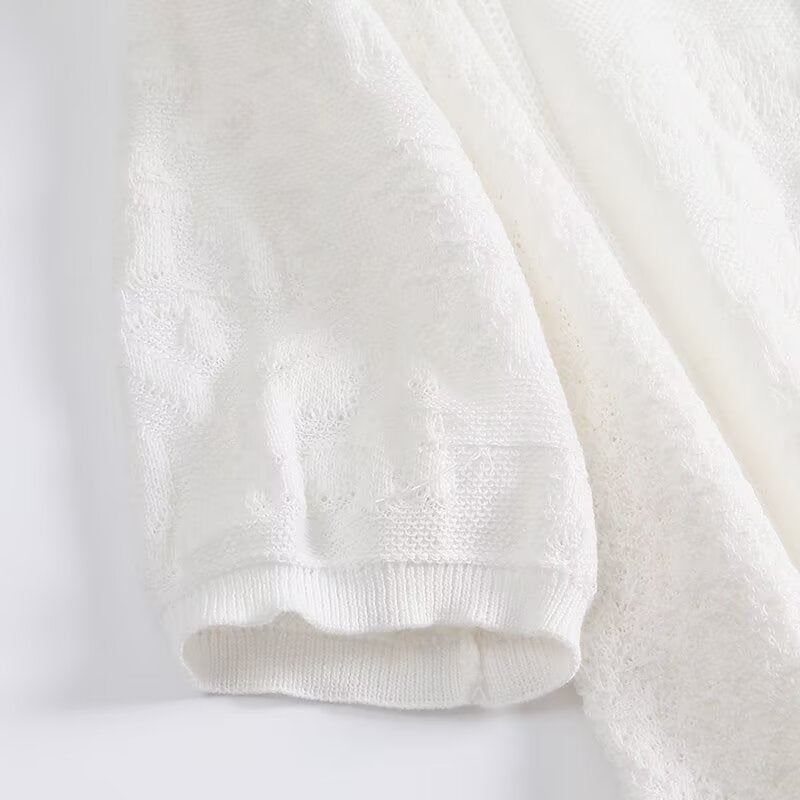 Women's new fashion lace round neck short sleeved knitted cardigan