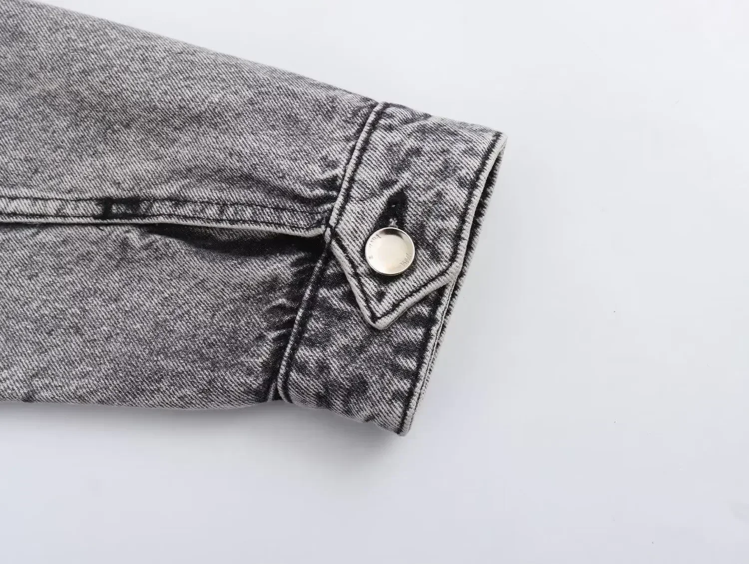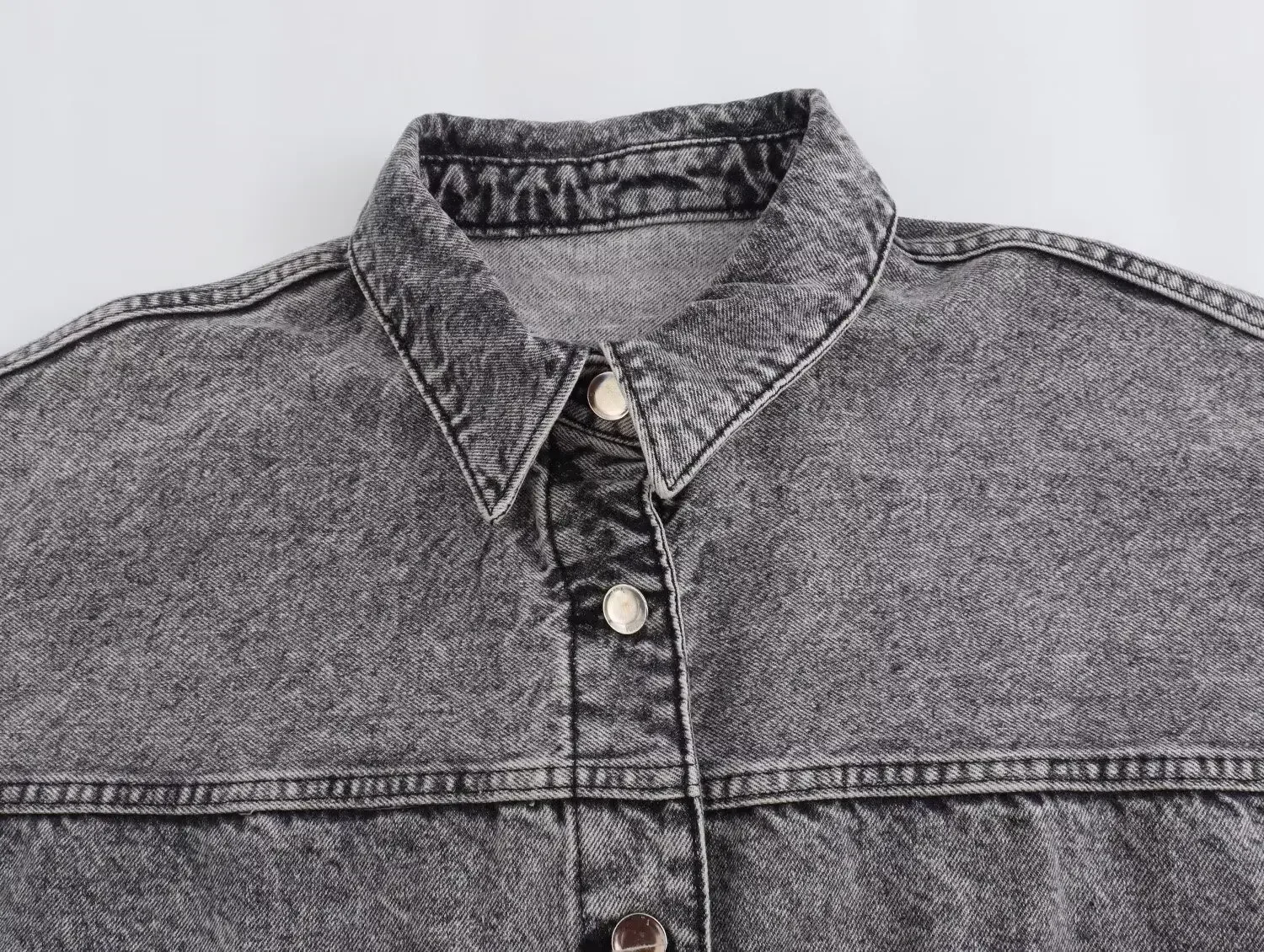 Women's new fashion large pocket decoration loose casual denim jacket coat retro long sleeved Button up women's coat chic
