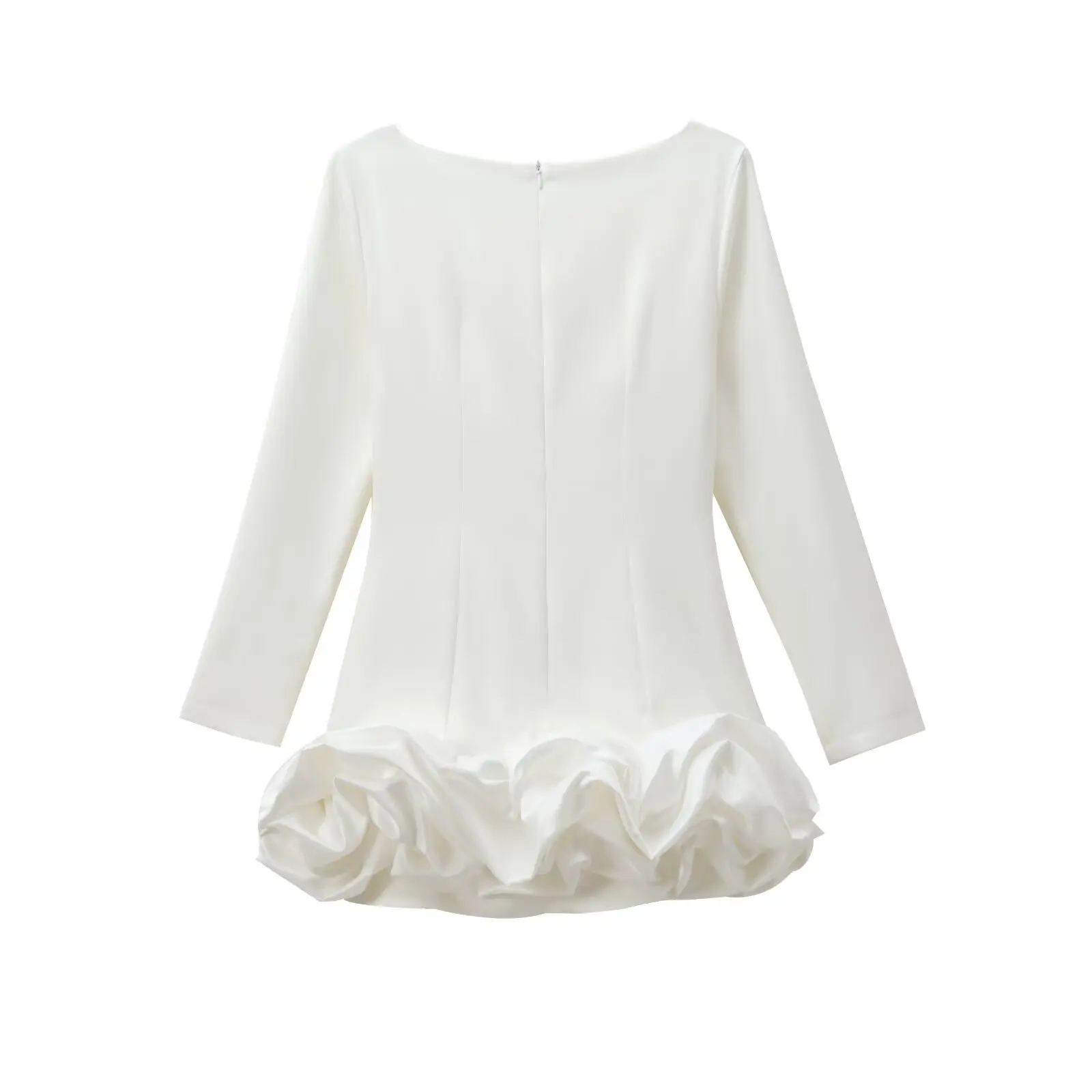 Women's new fashion layered hem design slim versatile sequin mini dress retro O-Neck long sleeved women's dress Mujer