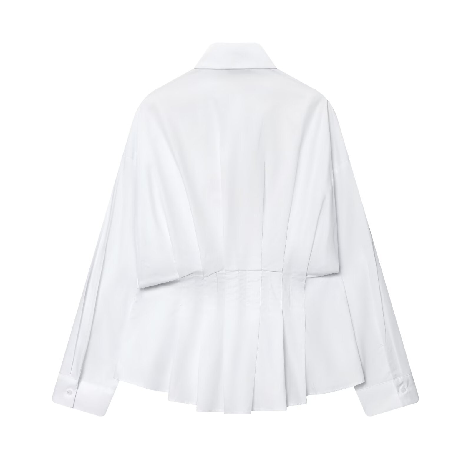 Women's new fashion long sleeved pleated poplin shirt